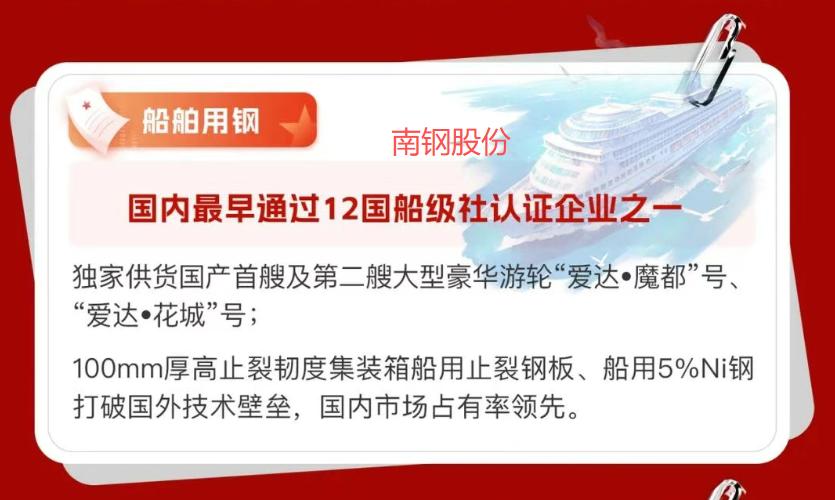 而南钢股份作为钢铁企业,独家供应了“爱达·花城号”、“爱达·魔都号”的所有钢板!