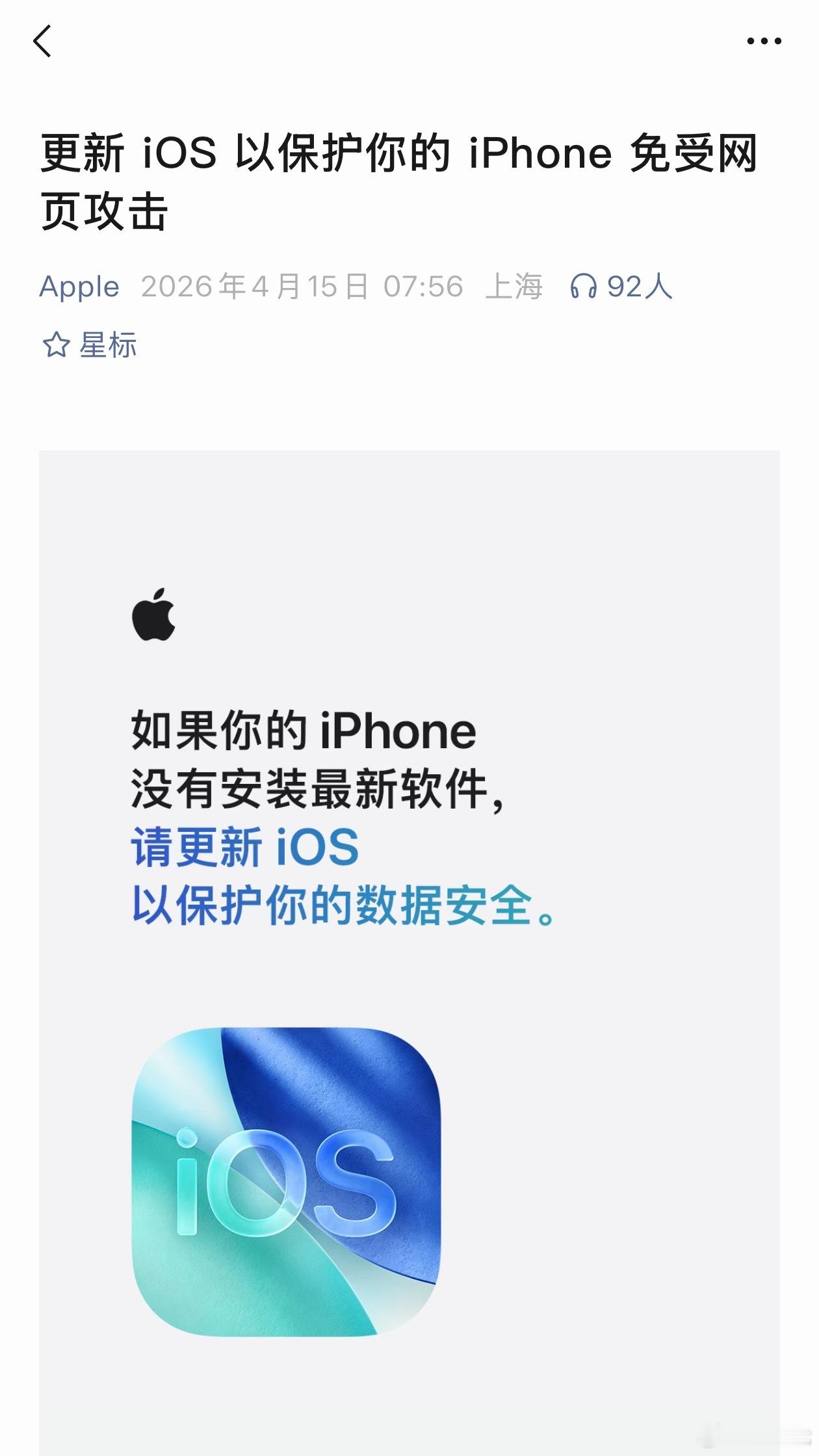 苹果官方发文提醒前几天那个iPhone安全的问题苹果官方发文来提醒了。虽然大