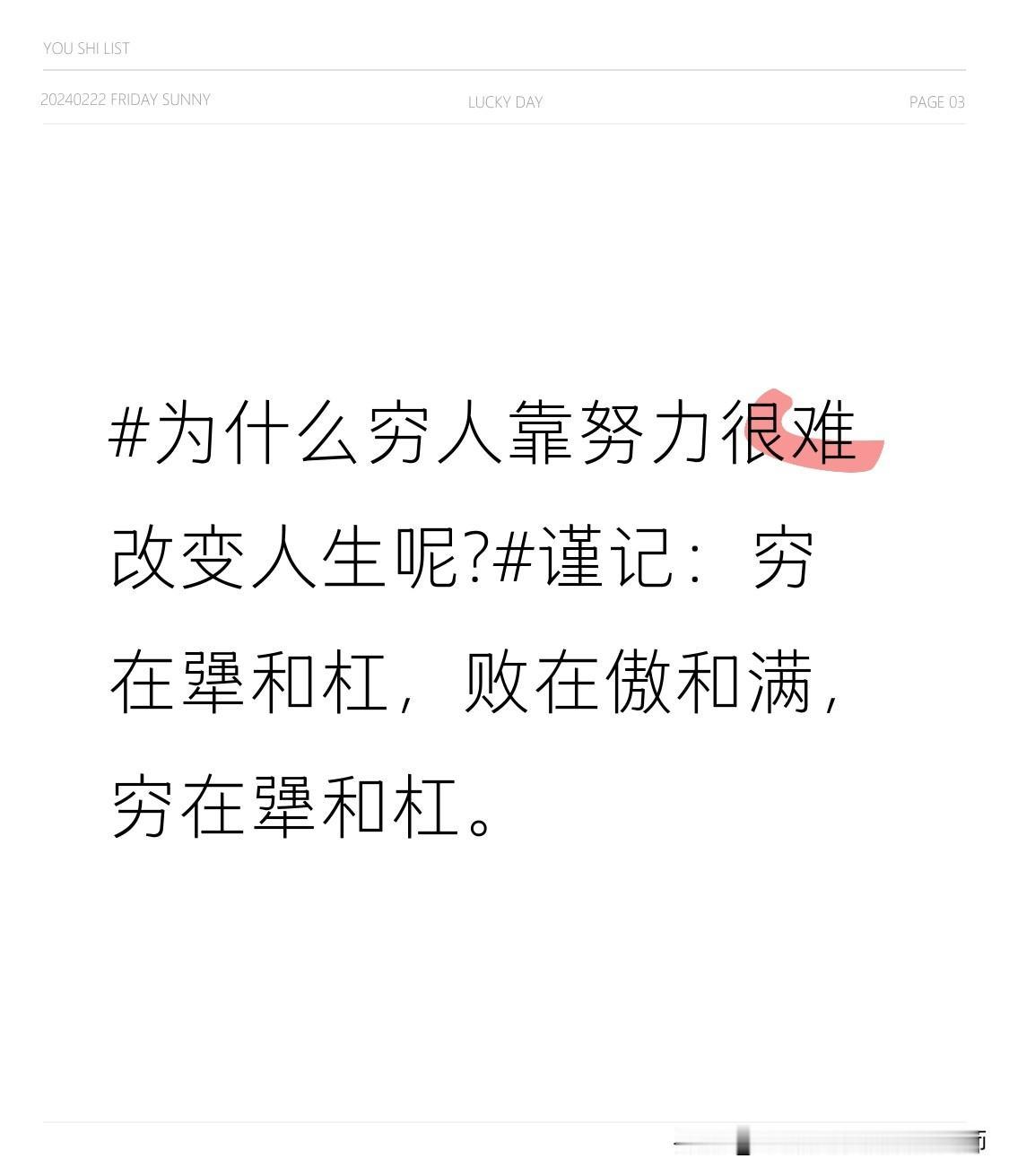为什么穷人靠努力很难改变人生呢?谨记:穷在犟和杠,败在傲和满,穷在犟和杠。