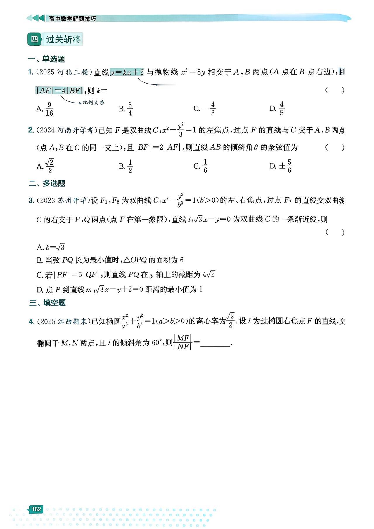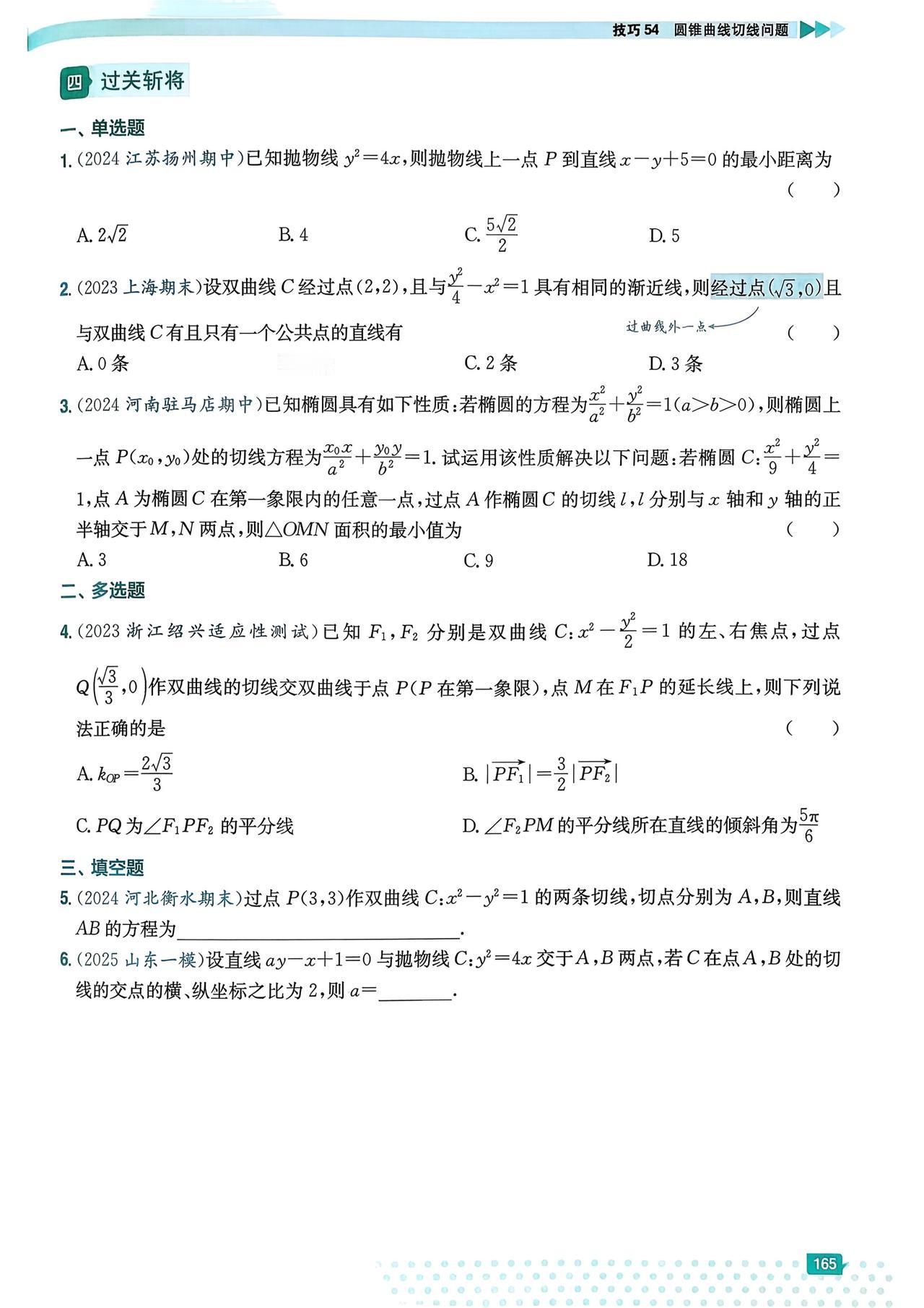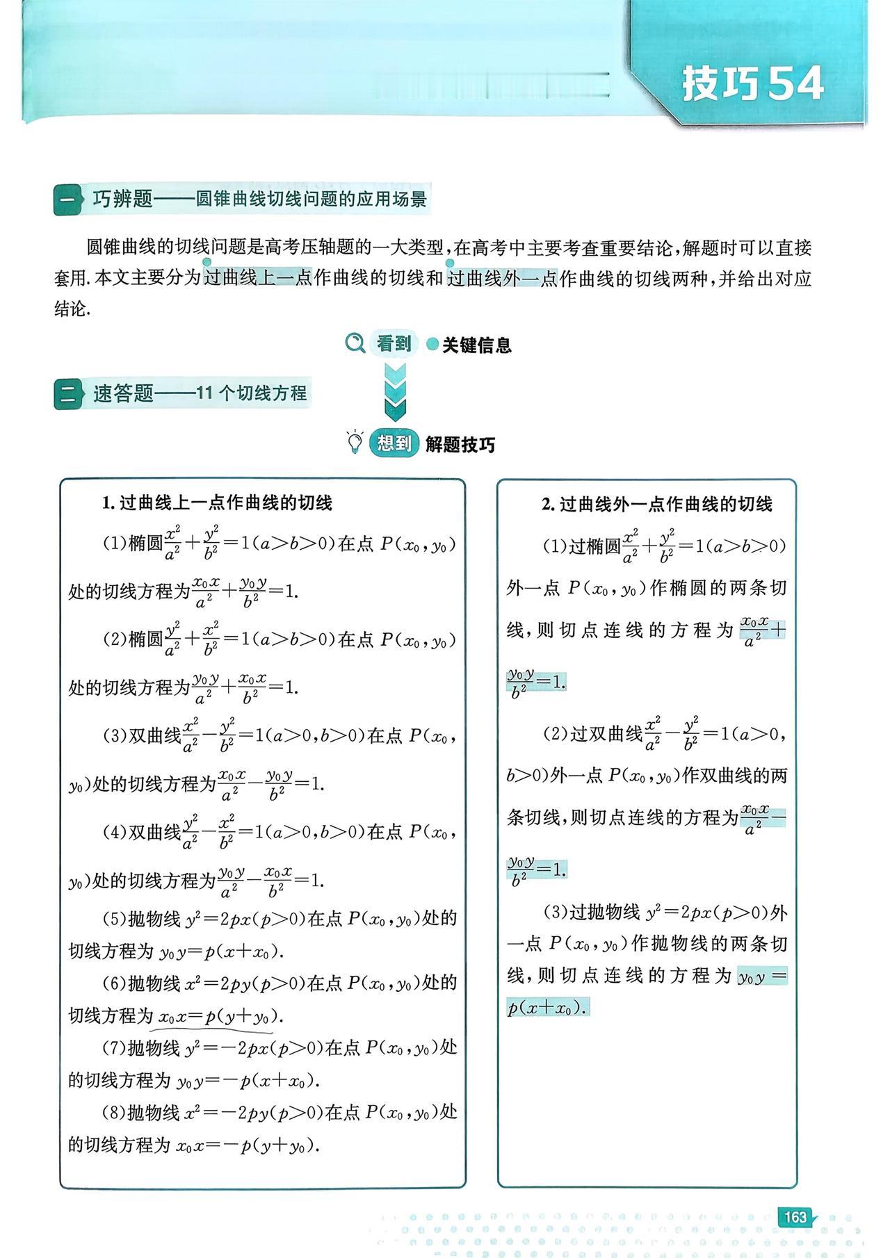 圆锥曲线必备结论 1、焦比弦公式 2、切线问题 3、渐进线模型