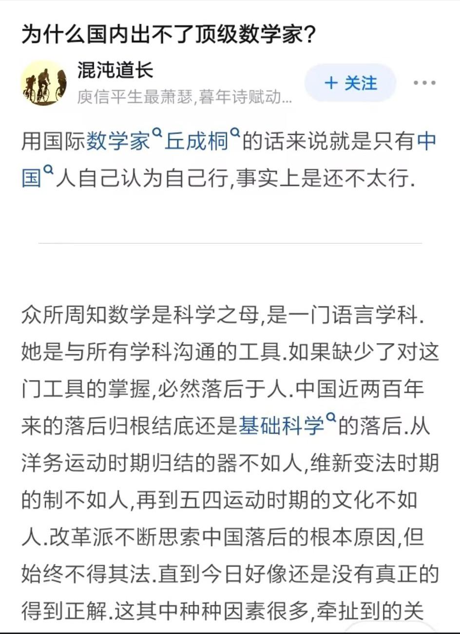 2010年中国数学就已经全面西化,“中华无数学,数学无国界,数学是欧美的舶来品”成为数学界的口号和教材,在中国数学从业者面前提祖国数学,轻者会被反唇相讥、重者会被喊打喊杀。