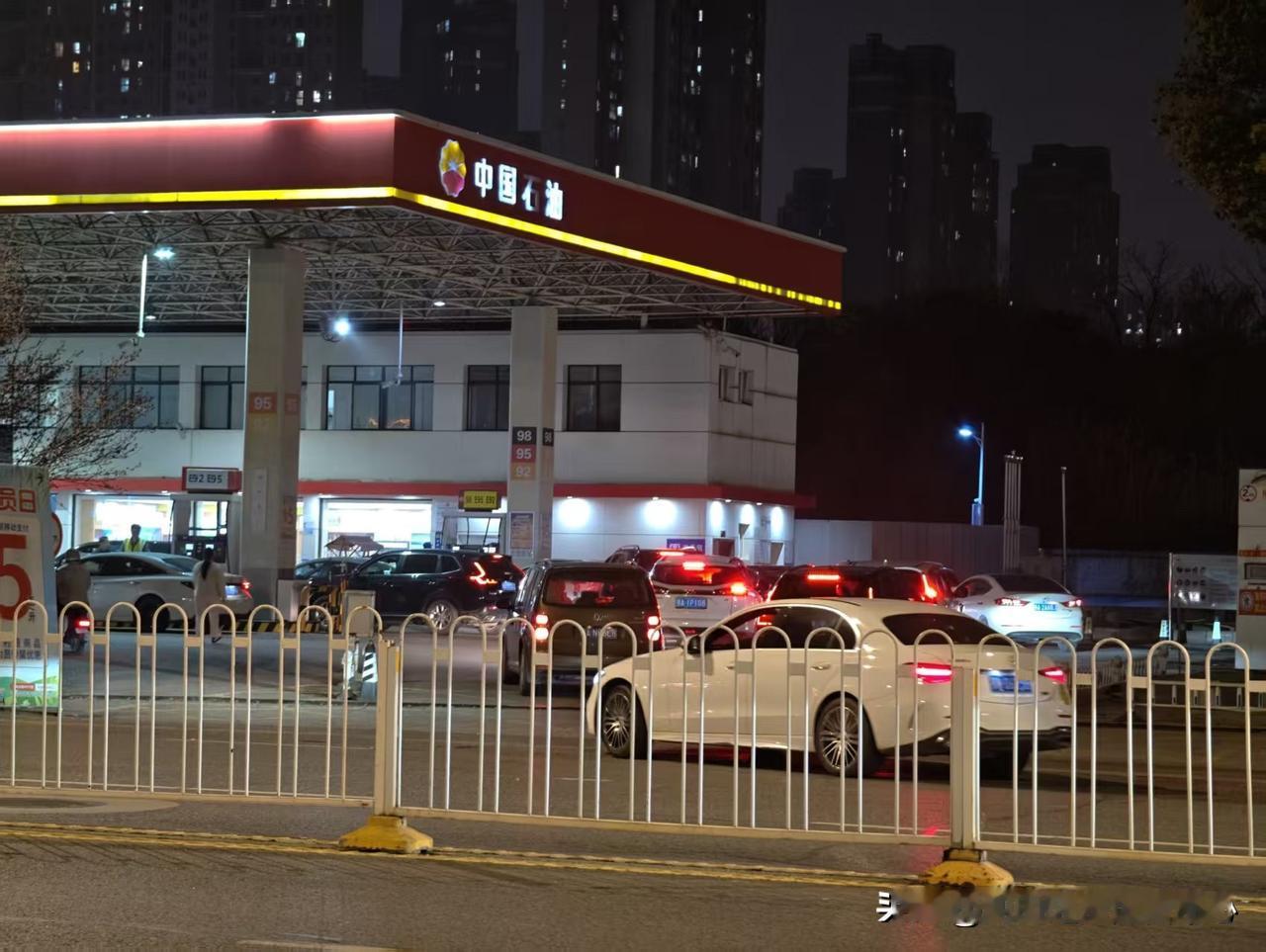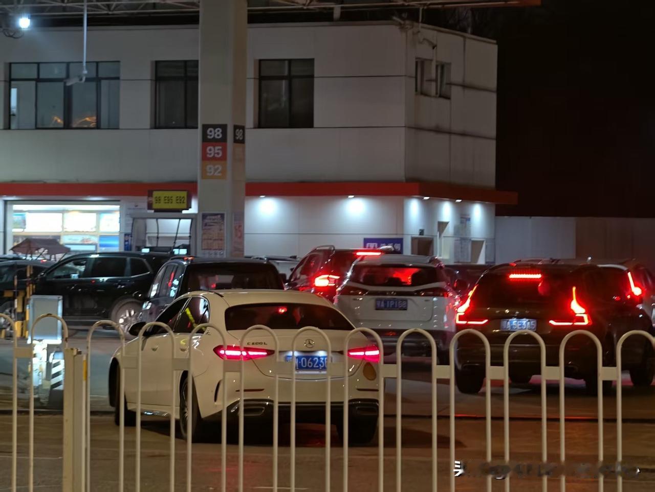 摄于3.22晚,车城西路小海豚和太子湖北路加油站。3月23 日24时,国内成品油迎来年内最大涨幅,92号、95号汽油每升上调约 1.7元,加满一箱多花近90元。消息一出,武汉车主连夜 “囤油”,城区各加油站瞬间爆满,车辆排成长龙,现场十分热闹。
