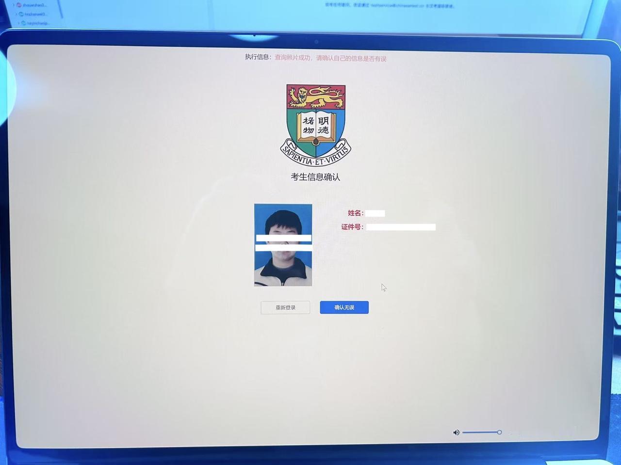 5.确认学生姓名, 身份证号码和当时申请所提供的登记照.如图6所示.