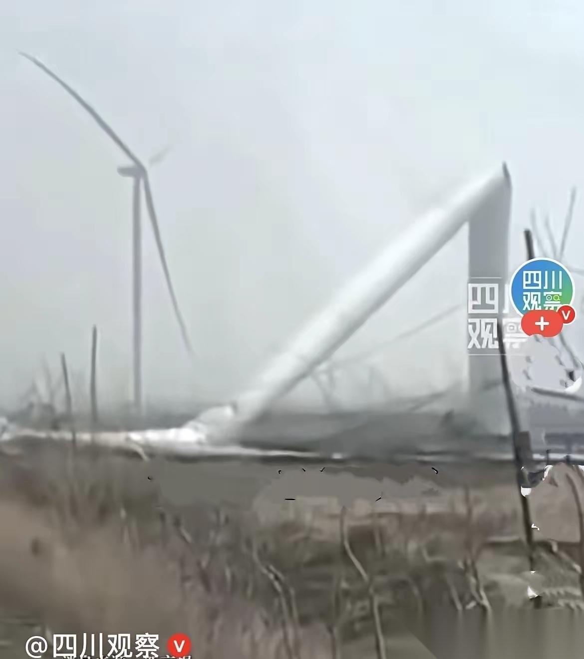 近日,辽宁铁岭夜里刮起7-8级大风,本该靠风发电的风力发电机,居然直接被风吹断塔