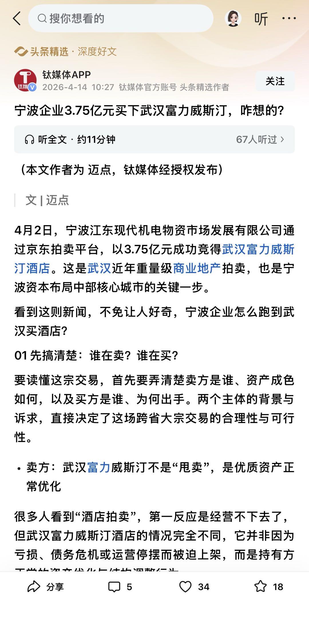 宁波企业豪掷3.75亿,跨省抄底武汉五星级酒店,背后真相不简单!