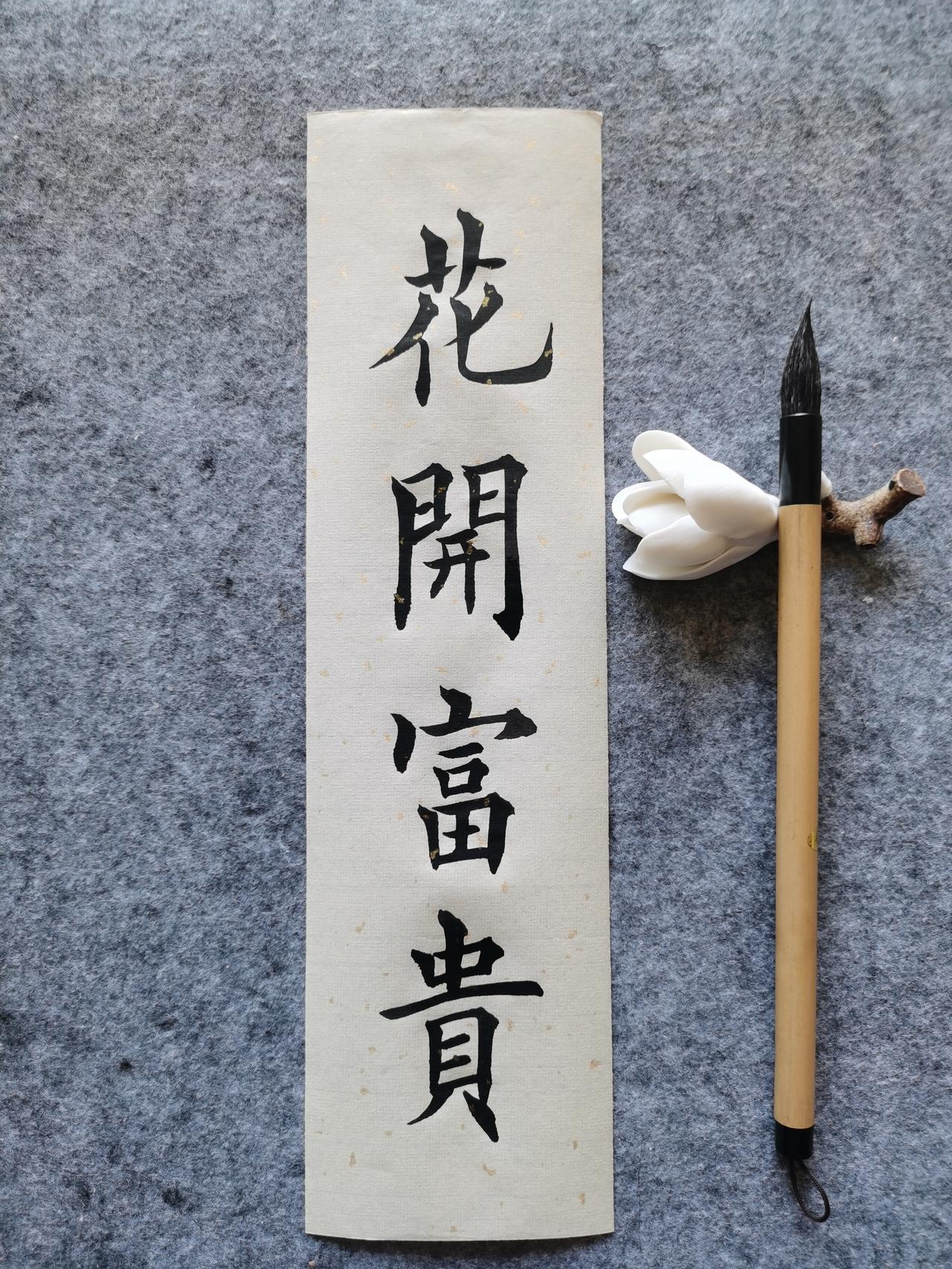 零基础自学毛笔字一年了,今天写的这四个字——【花开富贵】。