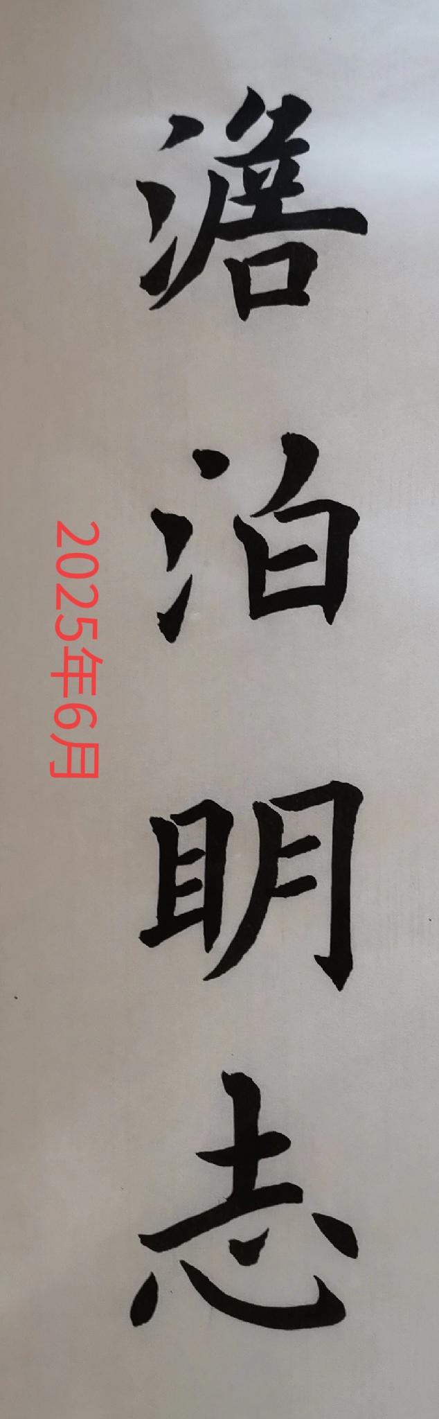 今天,我写下“淡泊明志”四个字,与半年前的习作对比,笔画间的从容与结构的沉稳,是我自己能清晰看见的进步。