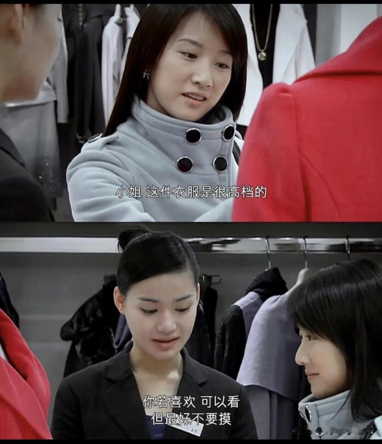 小姐,这件衣服是很高档的,你若喜欢可以看,但最好不要摸。因为颜色淡,万一碰脏了,我们很难销售的。