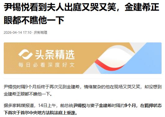 据韩媒报道,14日上午,尹锡悦和金建希在首尔中央地方法院同庭碰面,这是两人被羁押近9个月来的首次真正重逢。