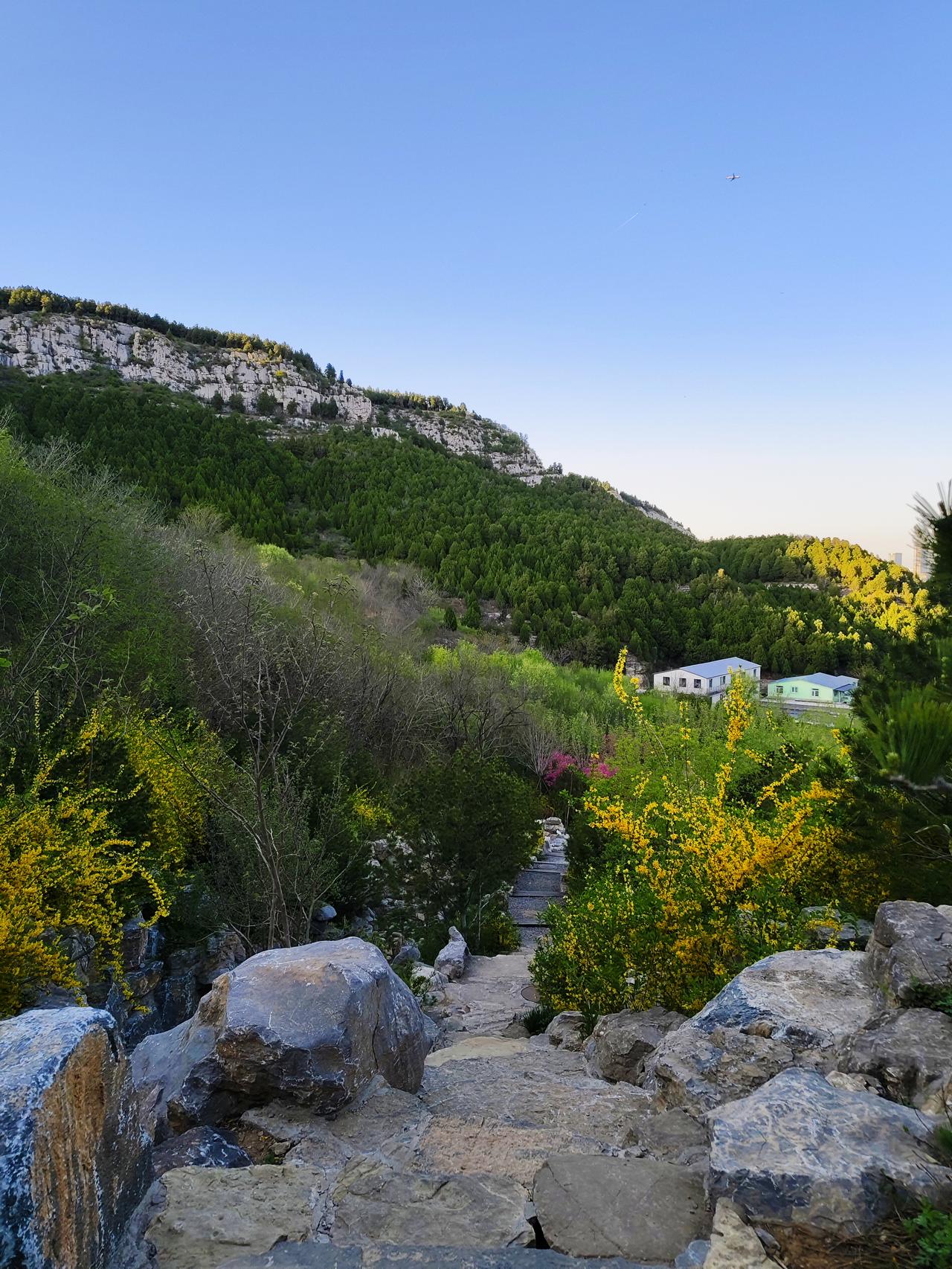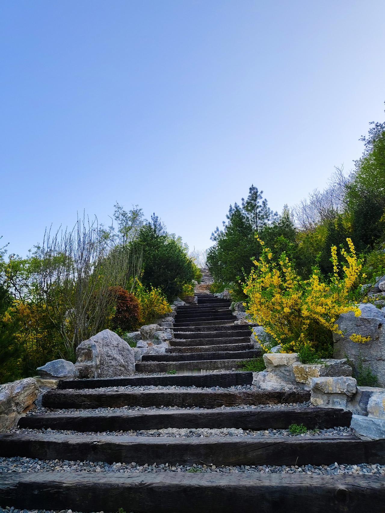 静静的佛慧山南门,最近随着天气转暖,春暖花开,来这里散步游玩的人越来越多了。我和老头是昨天傍晚去的,小小的停车场已经是满满的了,停车场旁边也停了很多车,正巧一个车出来,我们就顺便停下了。