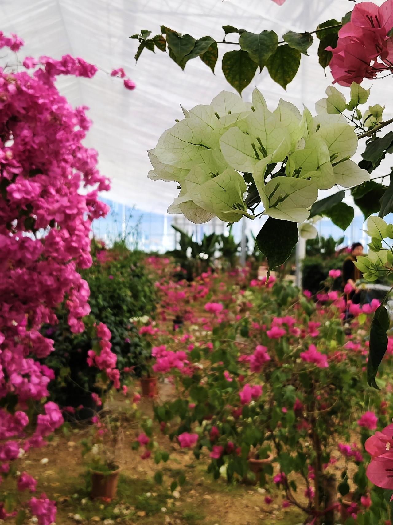 为了惹老人家高兴,昨天,我和老头专门去了南部山区仲宫花卉市场,那儿卖三角梅的特别多,而且品种挺多,有粉色的,绿色的,黄色的,玫红色的等等。