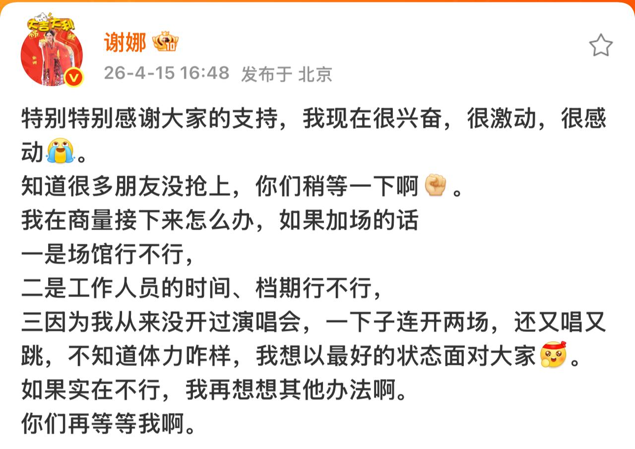 谢娜演唱会门票秒罄! 搞不懂了。 她开演唱会就已经很吃惊了。 更吃惊的是演唱会门