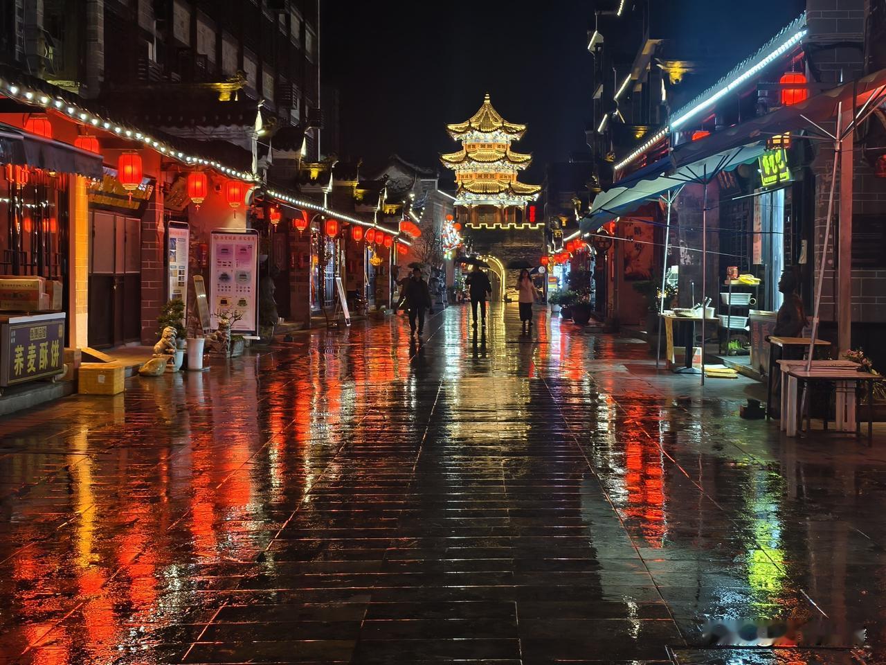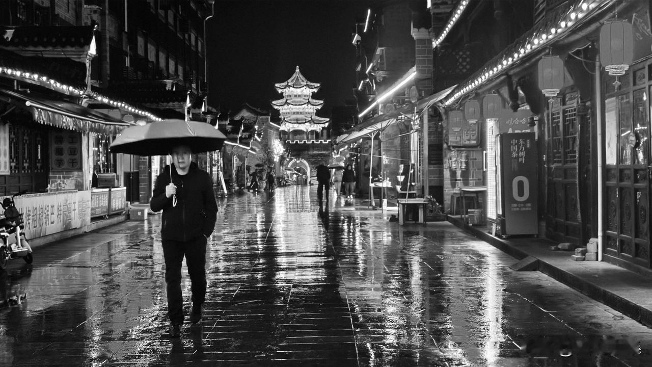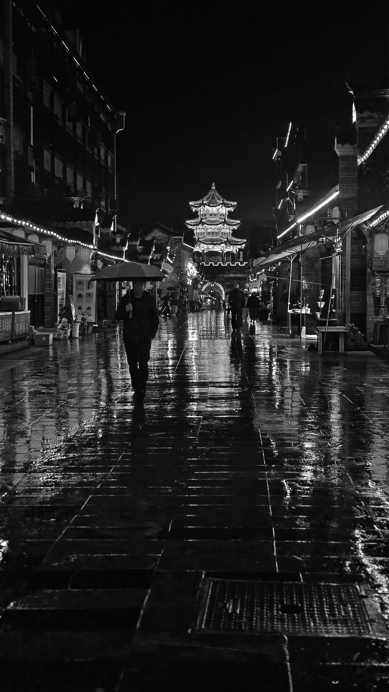 手机每天随手拍雨夜老街
