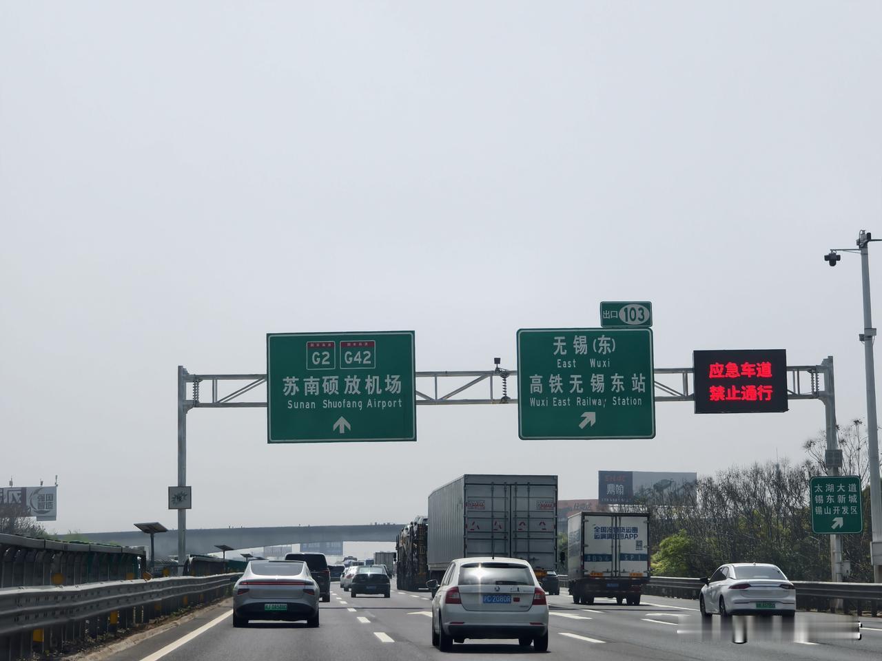 今天沪宁高速公路上车虽然有点多,但很畅通。