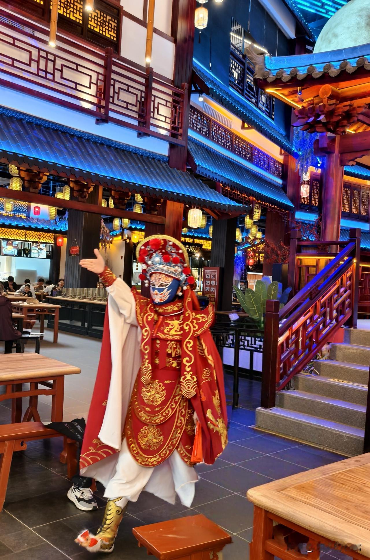 今天服务区里有戏剧表演和川剧变脸。