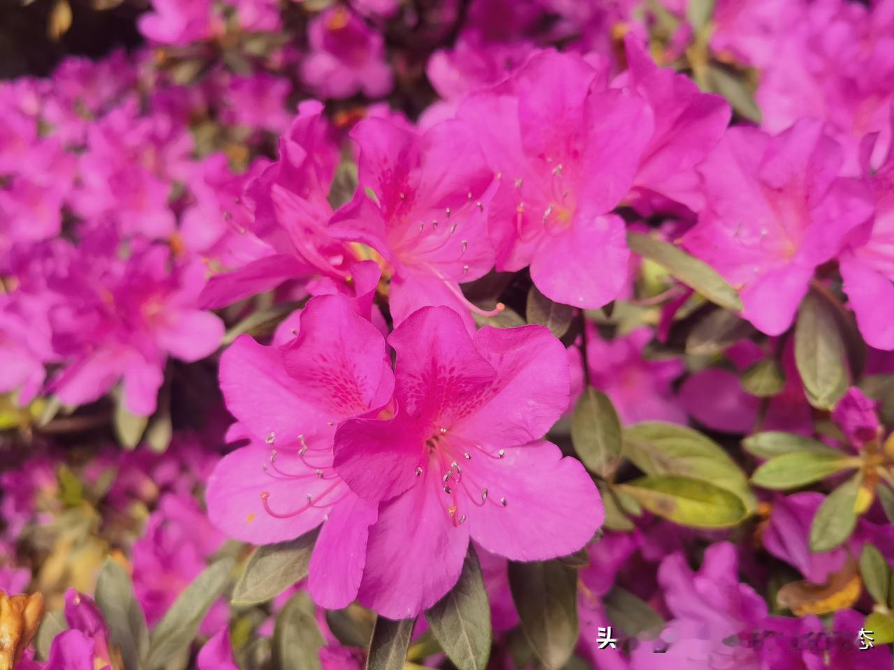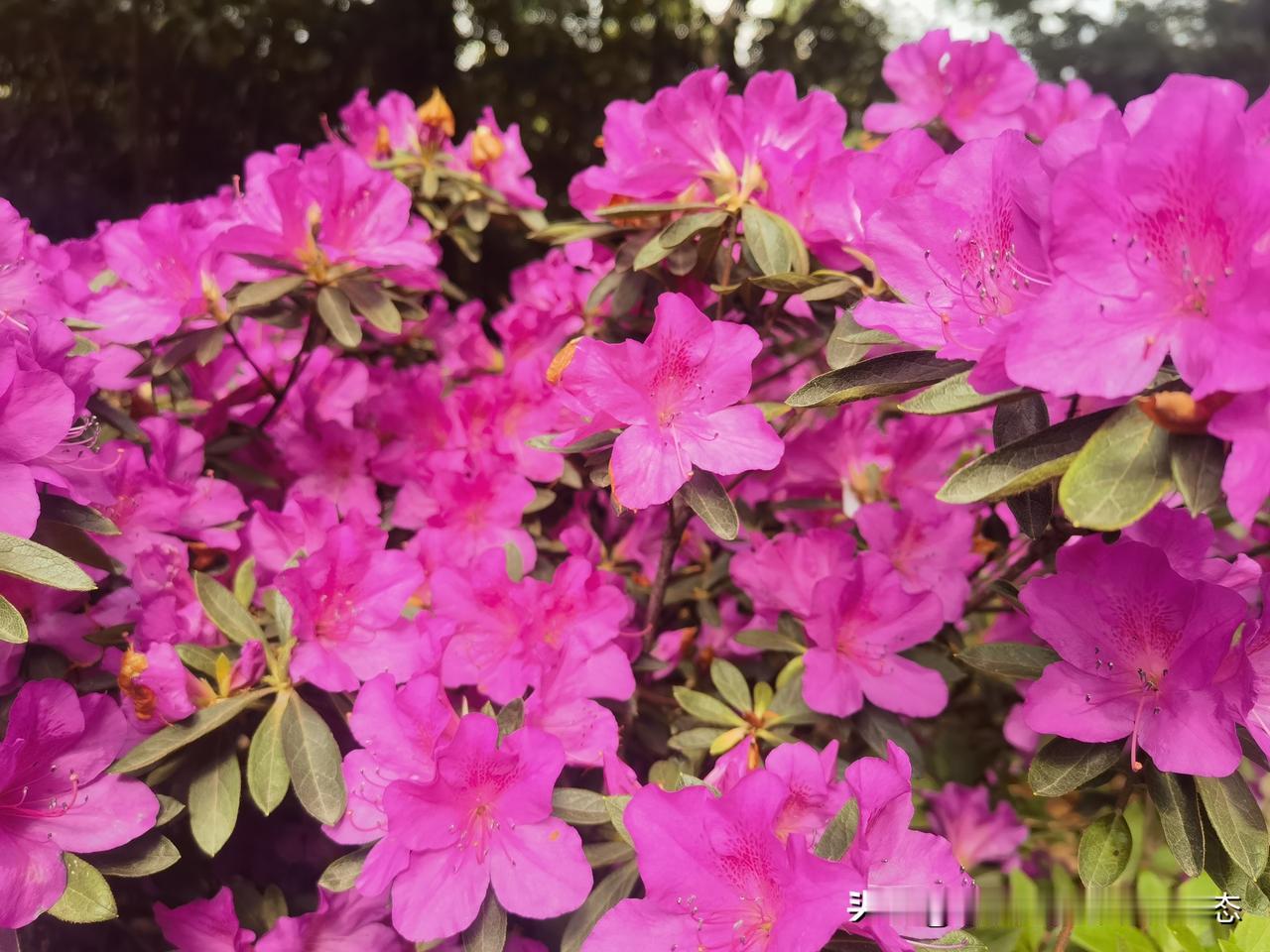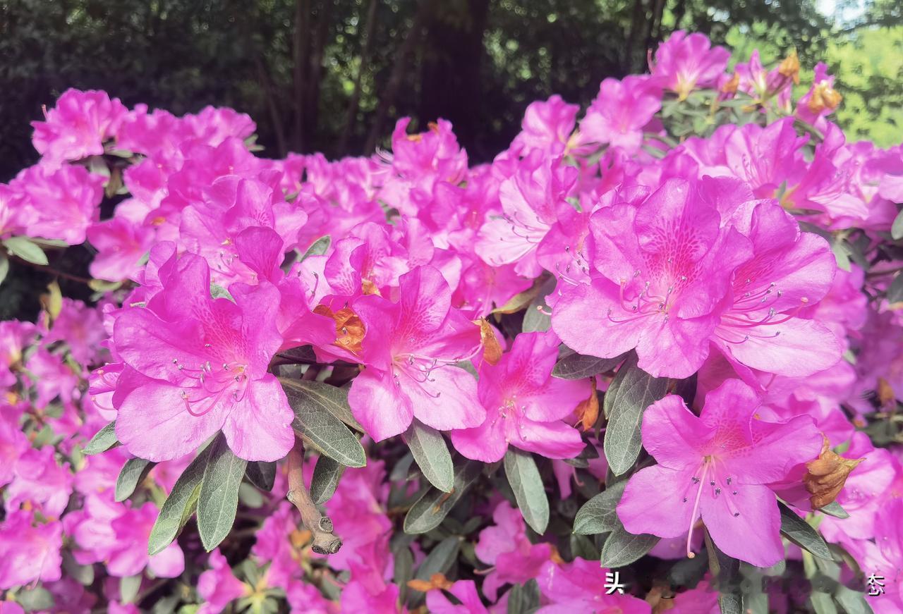 万朵鹃红映碧纱。