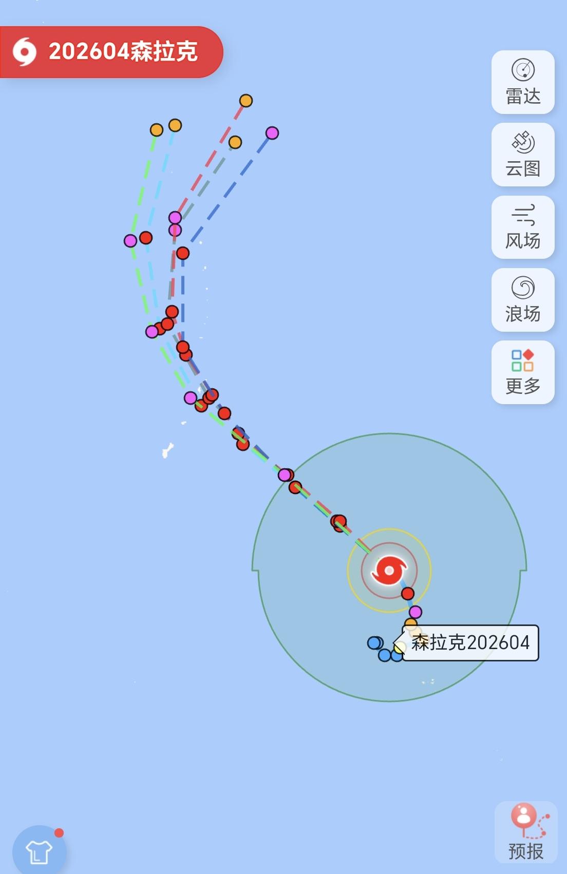从预测的路径来看,未来“森拉克”会拐弯走向东北,也就是说,“森拉克”大概率不会登陆陆地区域,会在海洋上消亡。