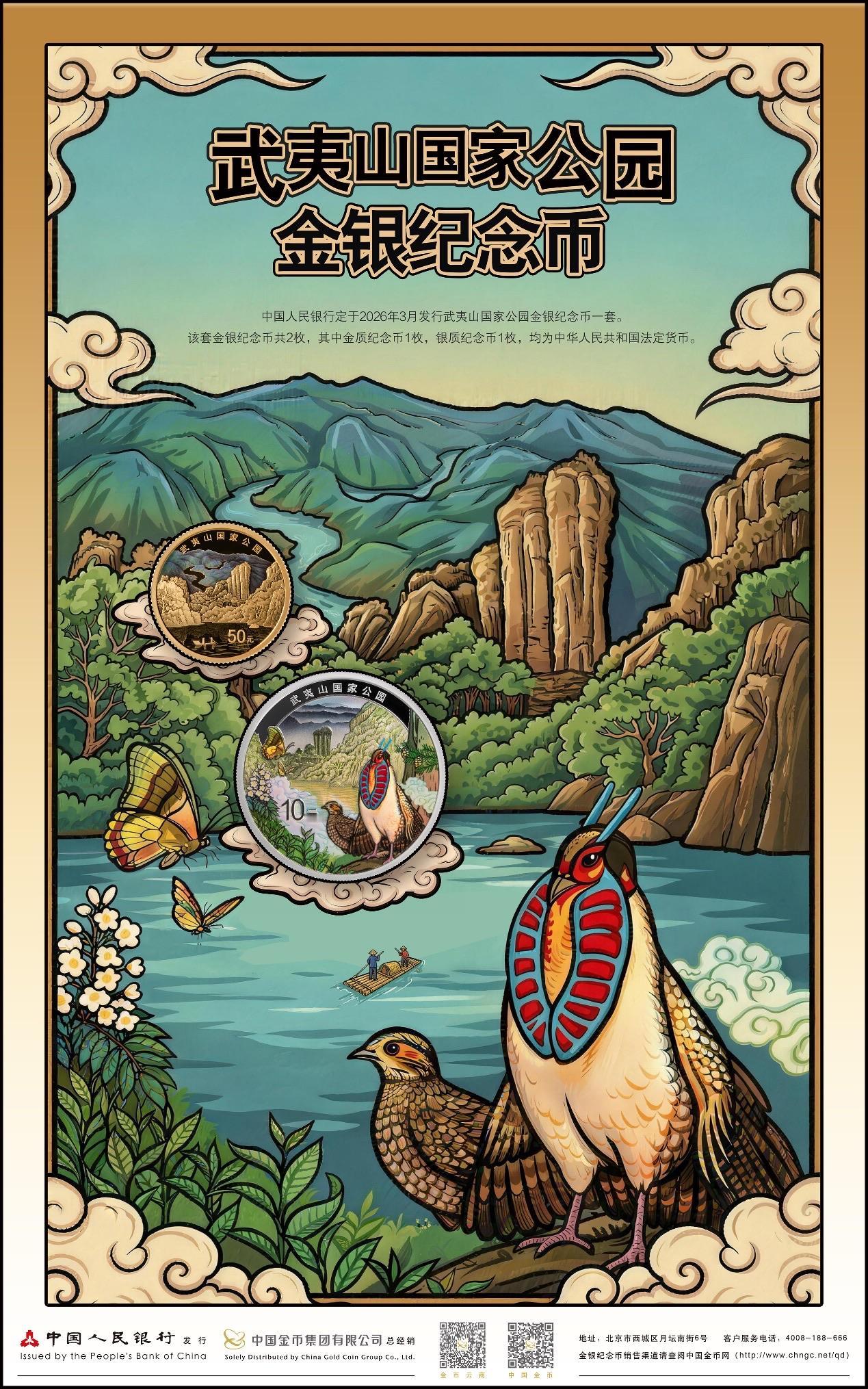那些你走过的武夷路,见过的武夷景,终会成为心底最温柔的回忆,而有这样一件信物,能将这份回忆定格,让你随时都能触摸到武夷山水的温度。2026年3月26日发行的武夷山国家公园金银纪念币,便将武夷的每一处美好,都镌刻在方寸之间: