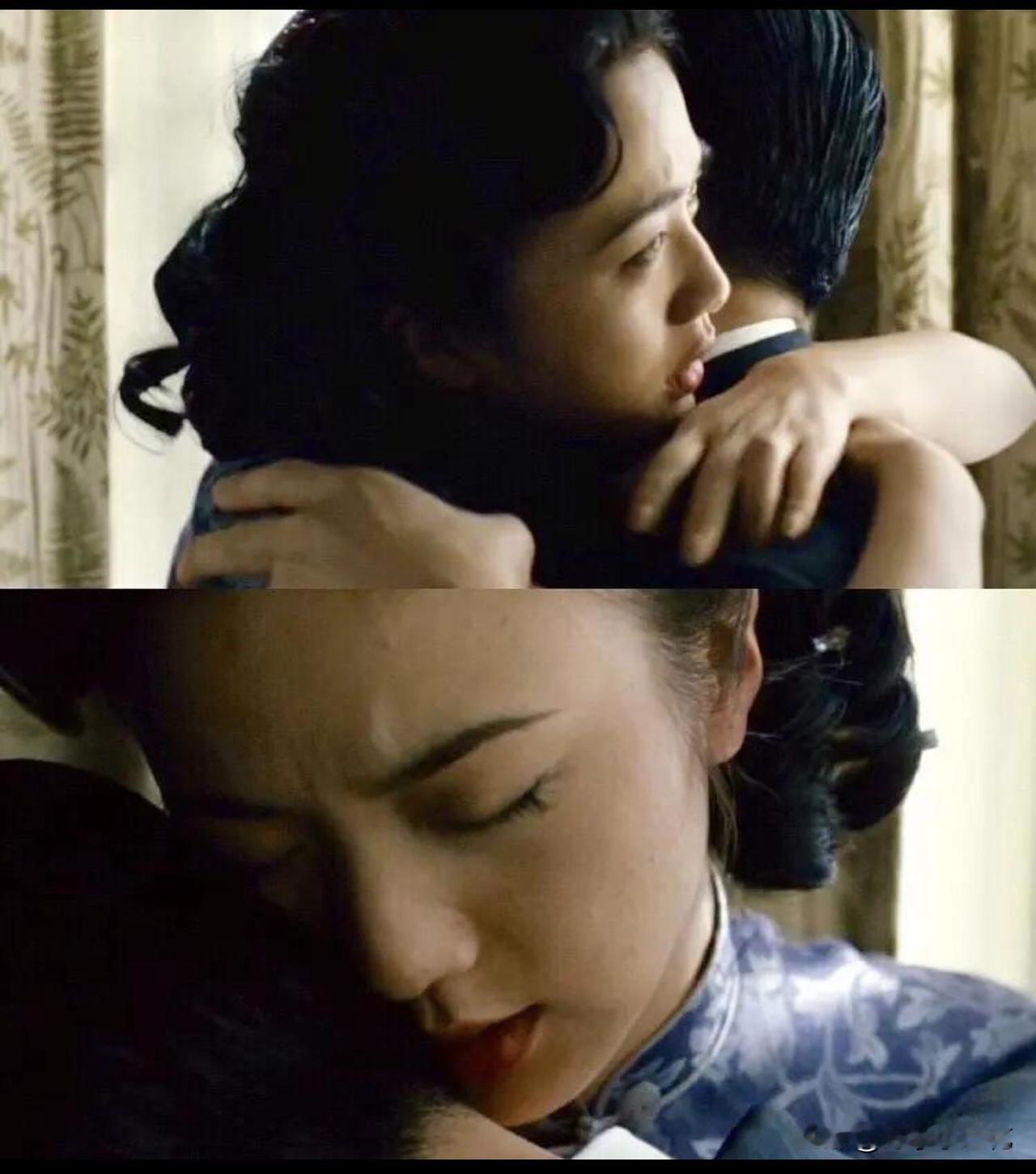场景更为私密,气氛明显软化。易先生褪去暴戾,展露脆弱,主动让王佳芝用丝巾蒙住自己双眼,第一次彻底放下戒备,全然信任她。互动温柔,无暴力无挣扎,只剩亲近与依赖。王佳芝彻底动情,内心刺杀的信念已然动摇。事后二人依偎,易先生露出难得的疲惫与温柔。