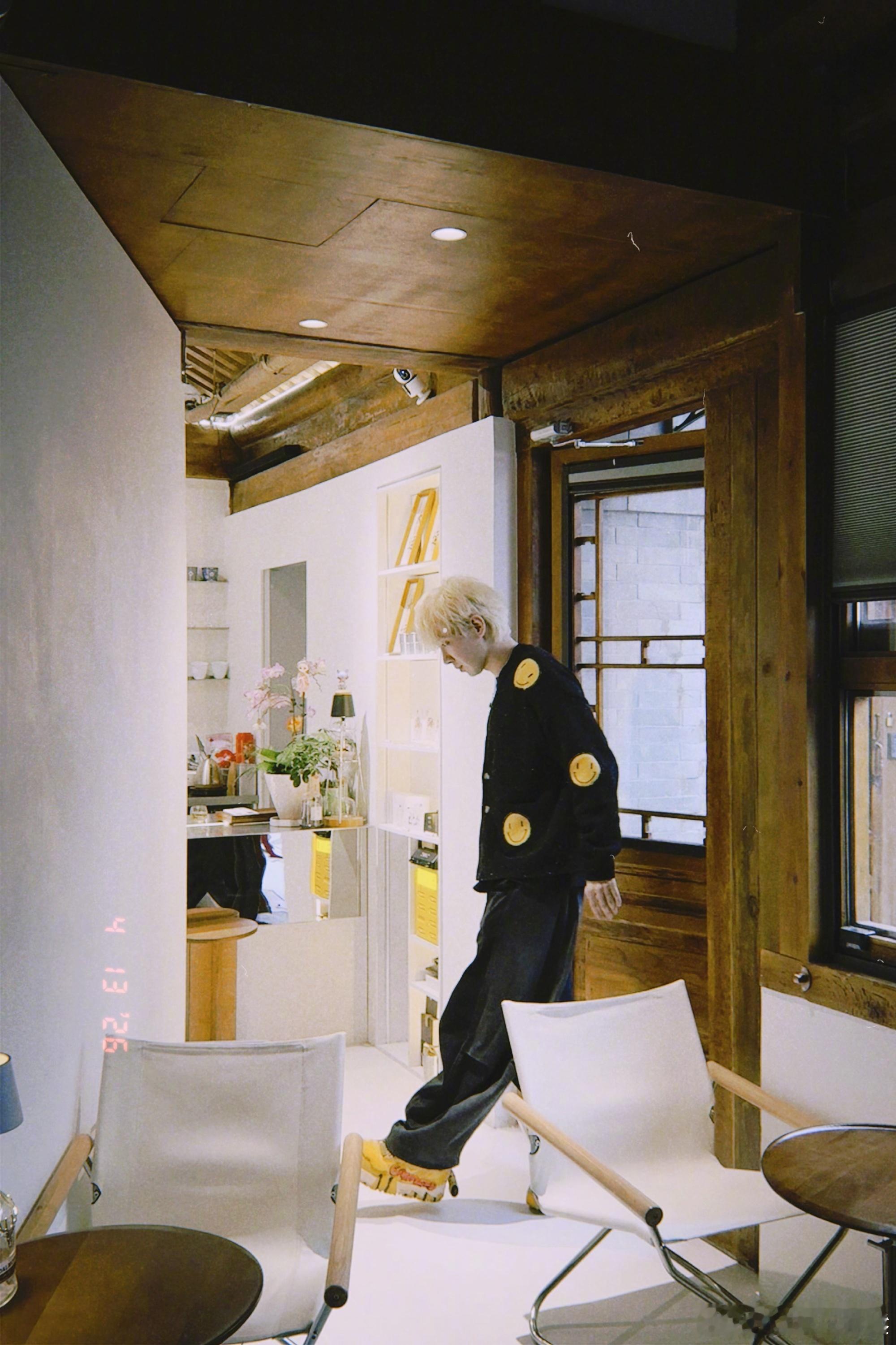 张弛白发造型 张弛这组白发胡同随拍太绝了~奶白发色配黑底笑脸衫,穿梭在老北京胡同里,松弛感直接拉满!Hello小白弛,氛围感帅哥上线!