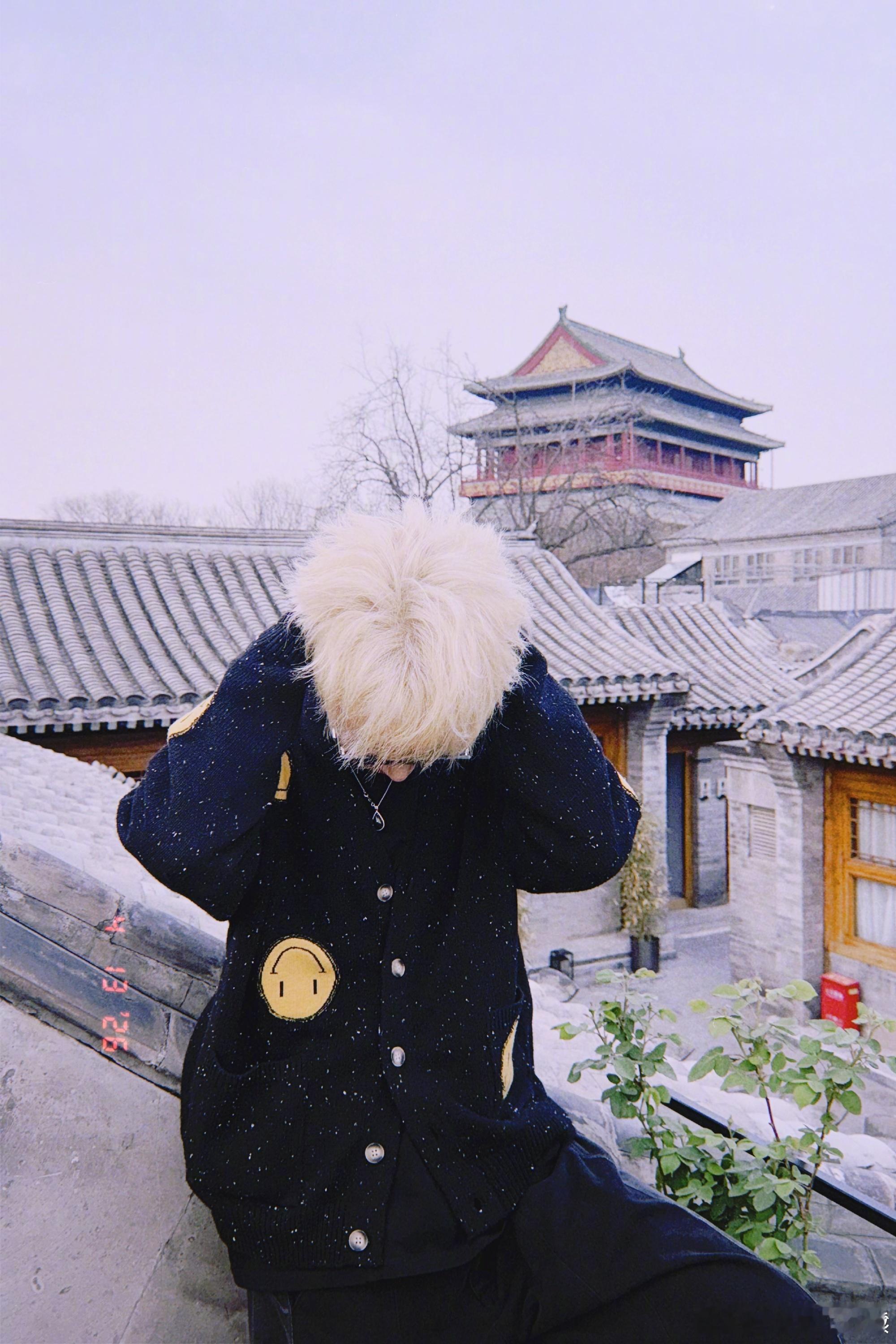 张弛白发造型 张弛这组白发胡同随拍太绝了~奶白发色配黑底笑脸衫,穿梭在老北京胡同