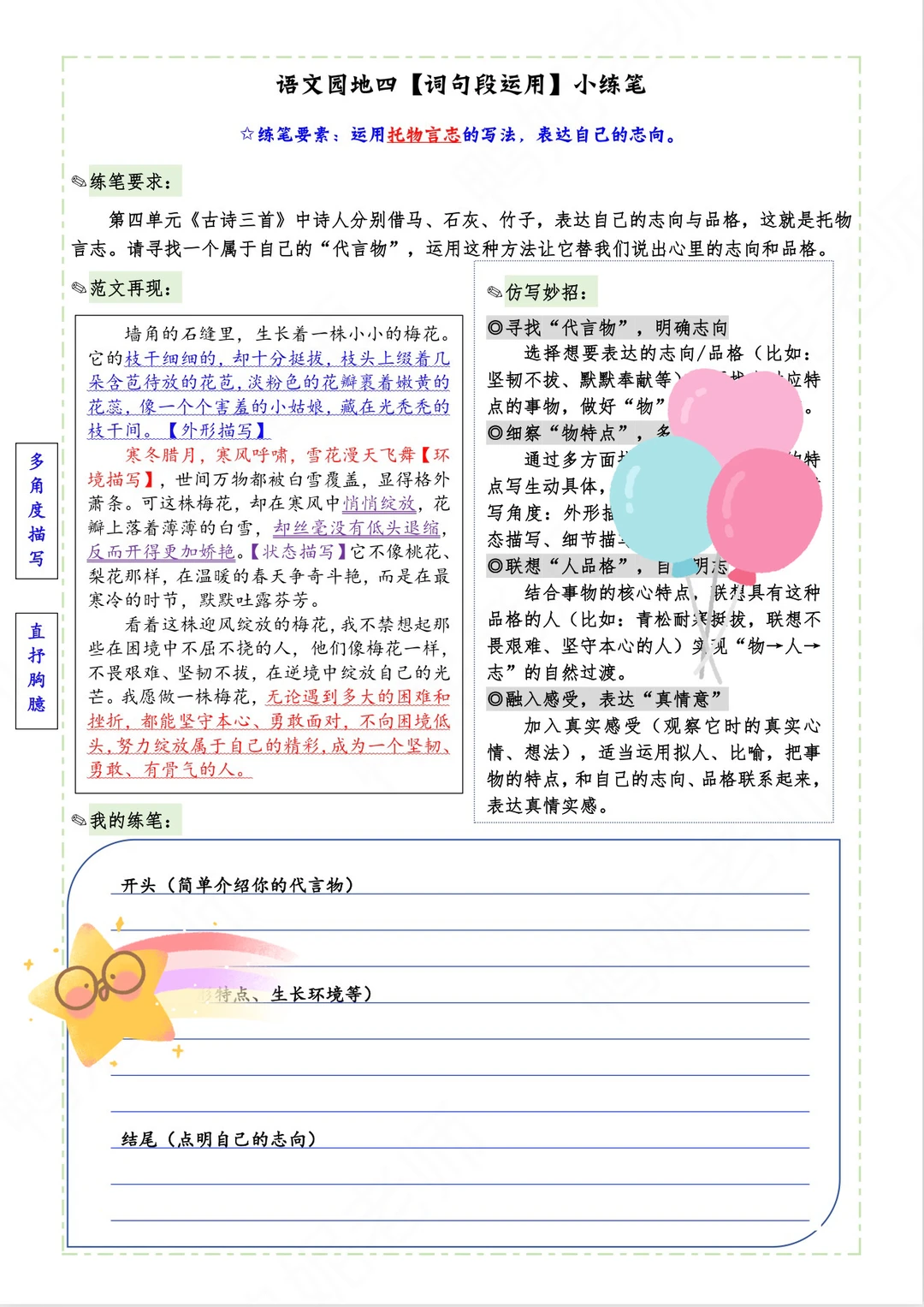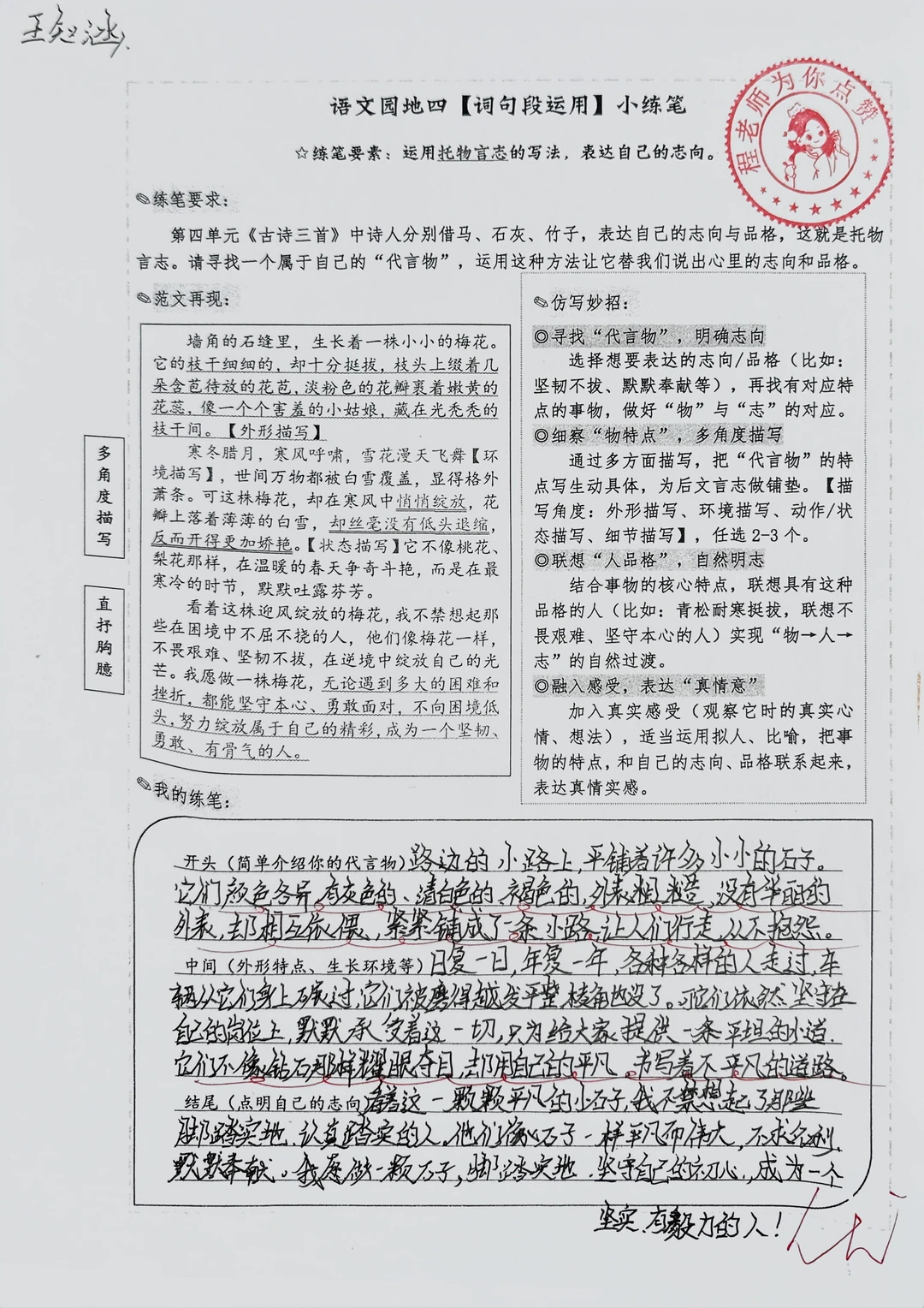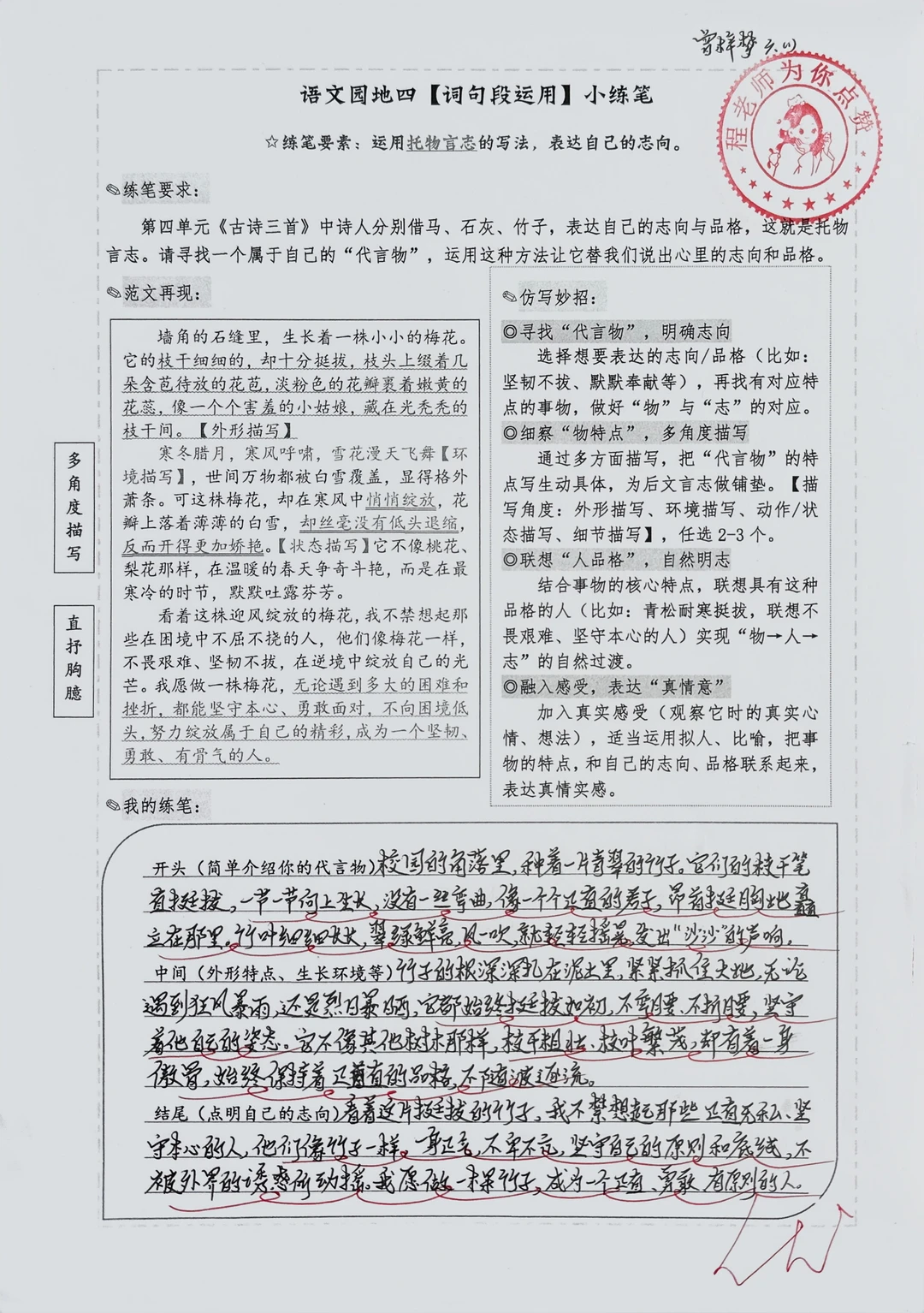 六下小练笔|用“托物言志”的写法表达志向