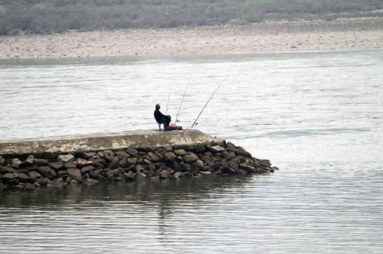不一会又听见水里有动静,原来老詹还在江边下了一排锚竿。