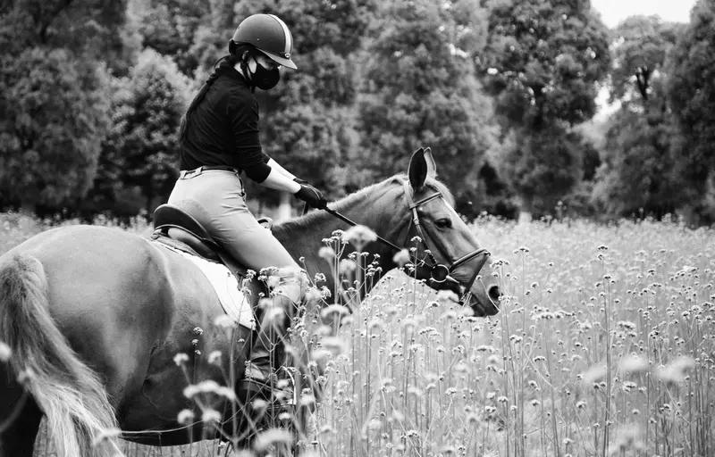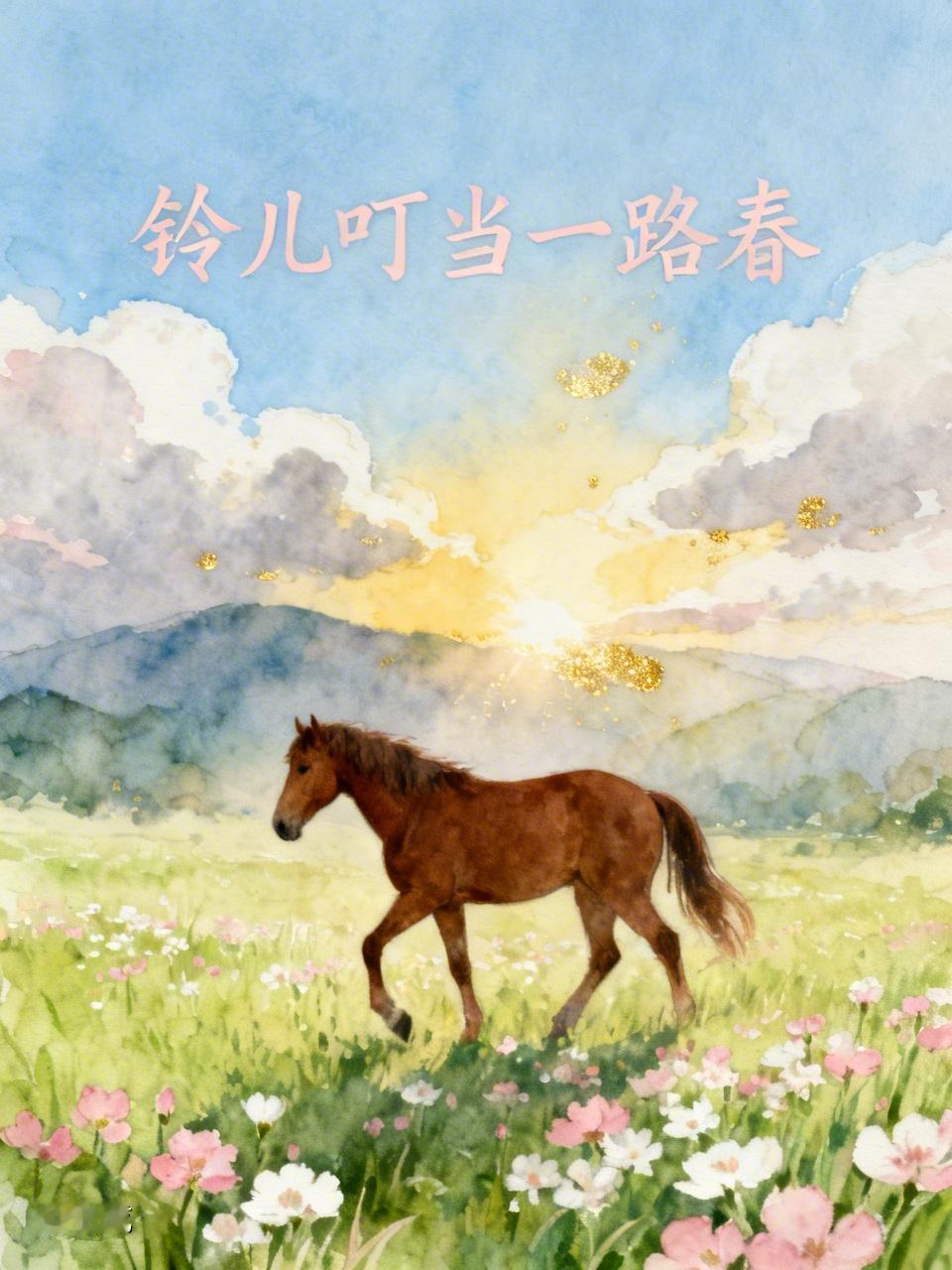 《铃儿叮当一路春》 骑马郊外踏歌行, 东瞧西望悠闲乐。 满眼春光彩缤纷, 马儿闻