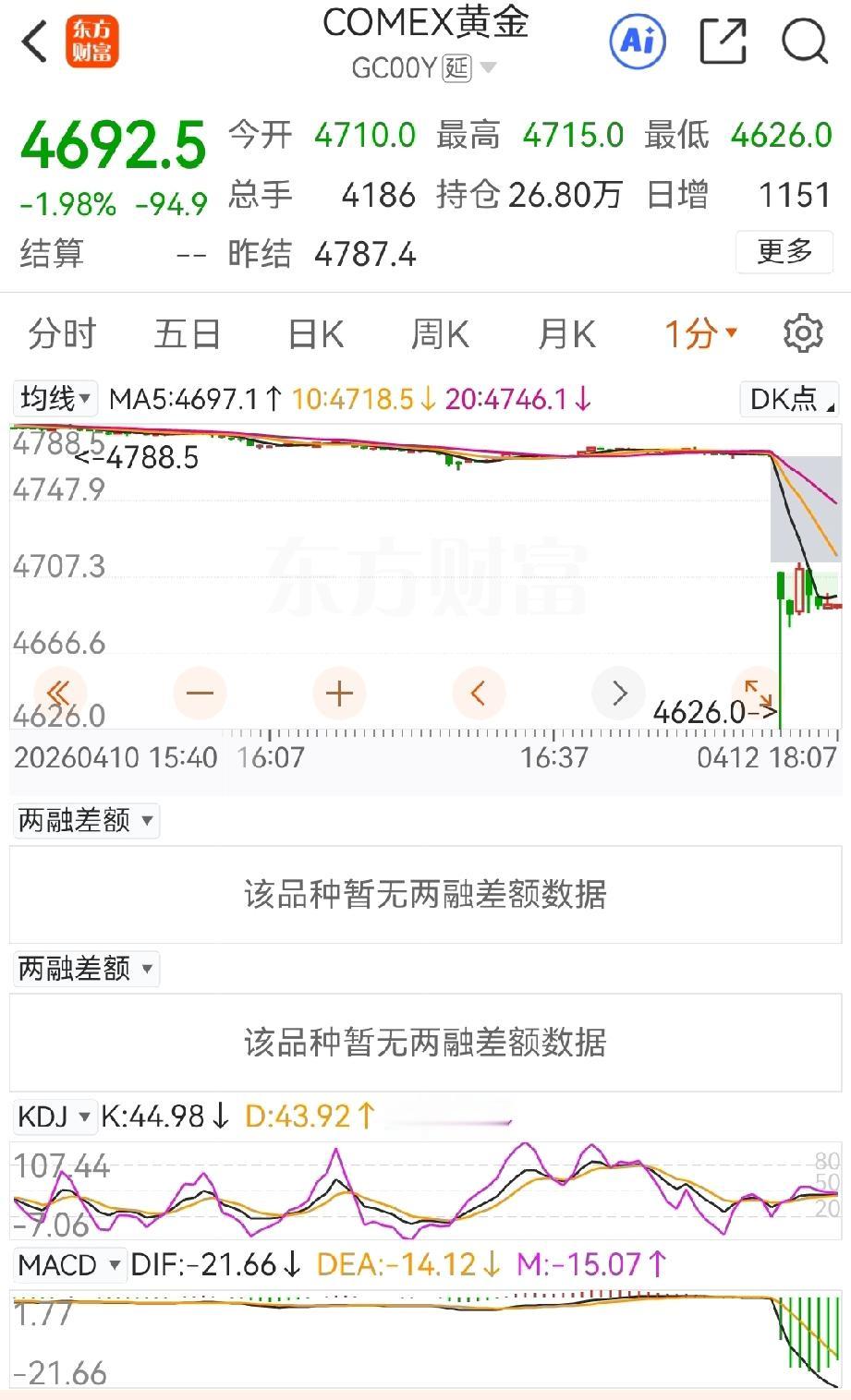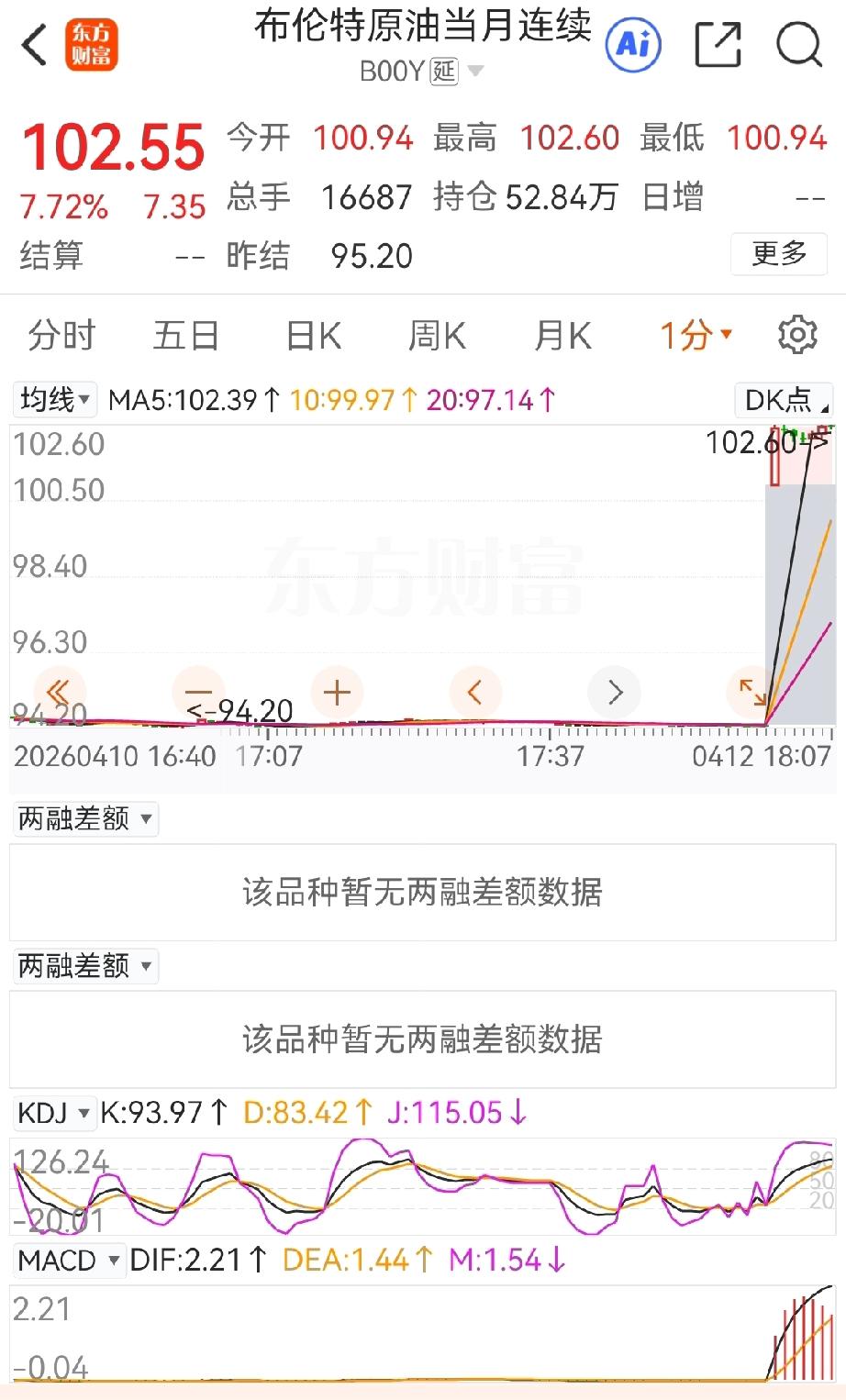 谈判的结果果然让原油再一次快速拉升,布伦特、美油均大幅高开。布伦特最高涨到102.6美元,美油涨到105.53美元,黄金大幅下挫,跌幅超一个点,最低跌到4626美元。原油冲高回落,黄金继续下探,情绪在开盘几分钟达到极点。谈不拢就接着打,美国封锁海峡,世界各国会认由不管?大概率不会。美的封锁海峡的做法,比伊朗封锁海峡更让国际社会反感。