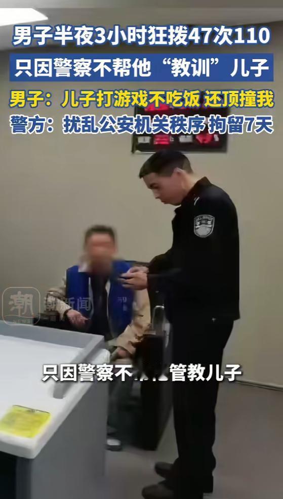 (信息来源:《男子半夜3小时连拨47次110,只因警察不帮他管教儿子,警方回应:拘留7天!》潮新闻)