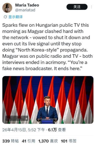 刚赢选举的匈牙利新总理,上来就跟自家国家电视台吵了起来。在匈牙利公共电视台上,新当选总理马加尔与该电视台发生了激烈冲突,他扬言要关闭该电视台,并甚至要切断其直播信号,直到他们停止传播“朝鲜式”的宣传内容。