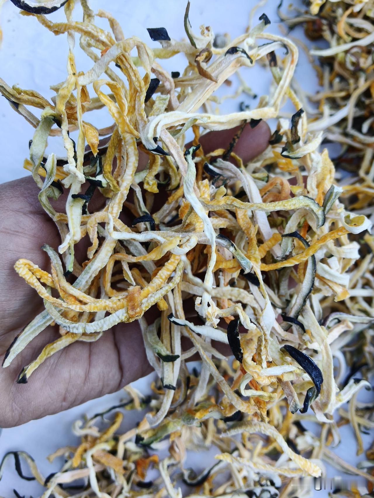 这干北瓜丝完 美避开了这两点,10几斤鲜瓜只能晒出1斤干丝,味道浓郁,异常鲜美!