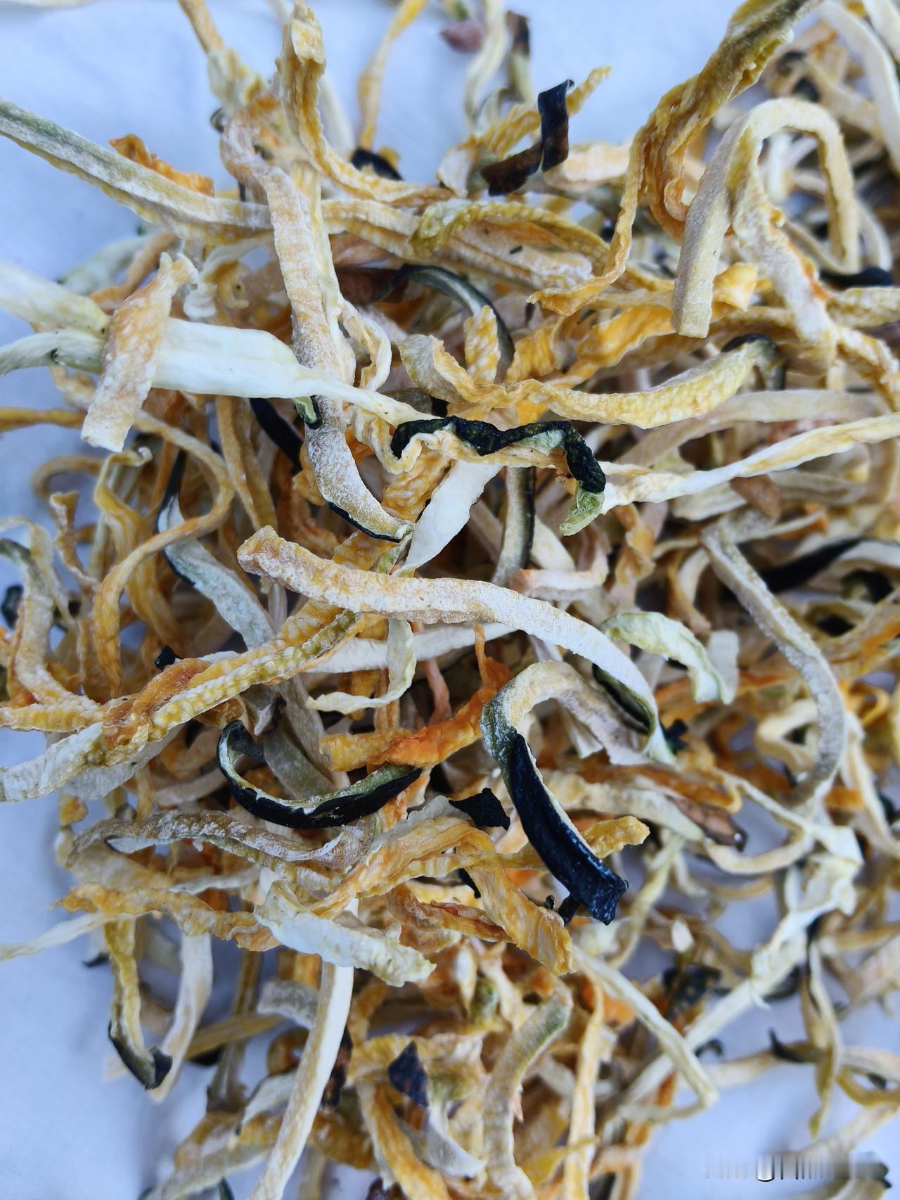 不是干面甜的老北瓜,是偏嫩的北瓜晒的,可以做馅、或者做蔬菜汤。