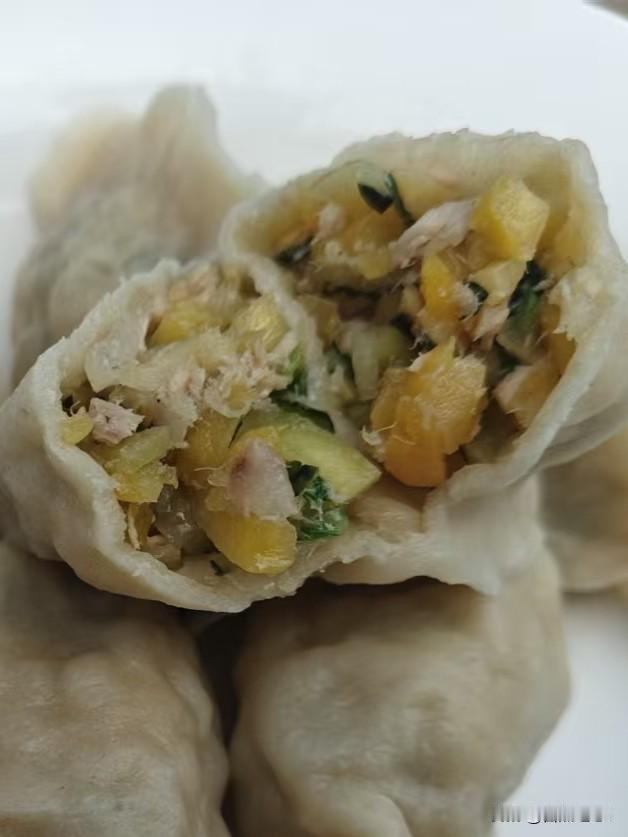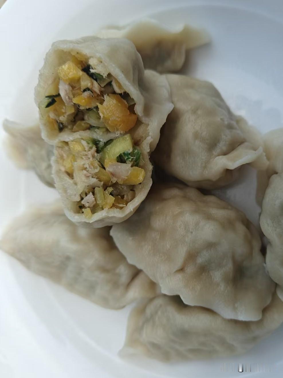 剩下的馅儿我们捏了饺子,煮的时间短,瓜皮有些硬。