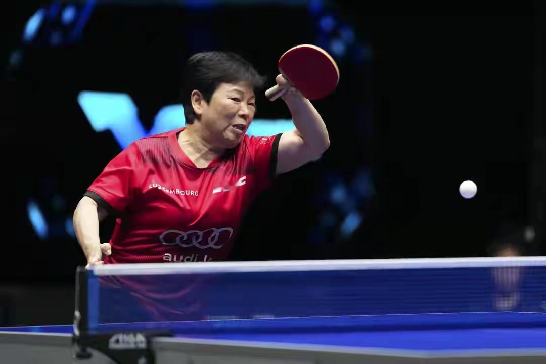 别看比分差距,前两局倪阿姨一度紧咬,63岁还能和小将拼到这份上,真的不错!