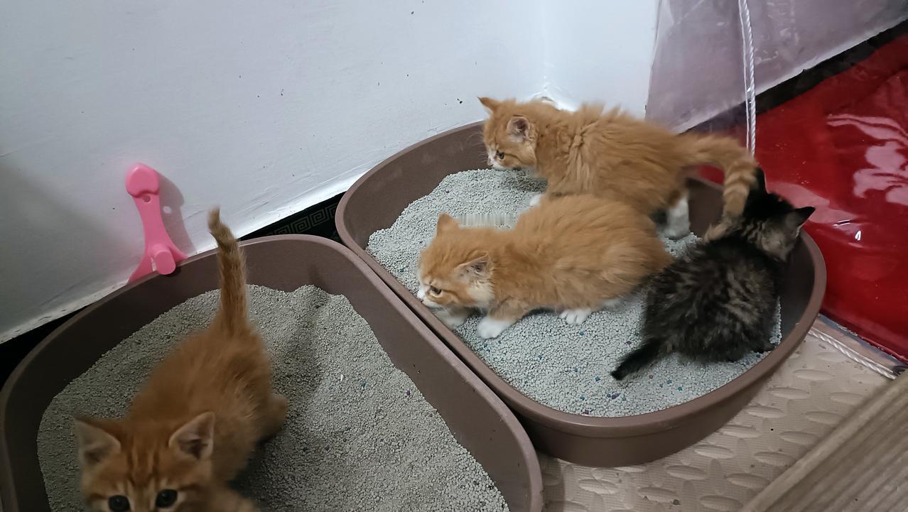 我真是太粗心大意了,居然没发现小狸花猫是彩狸,是只小母猫,直到我看见它的同胞兄弟长毛小橘骑在它身上,我才后知后觉想到去查看小狸花猫的性别,确定是母猫后,我赶紧把它关在狗屋里和小三花猫做伴。
