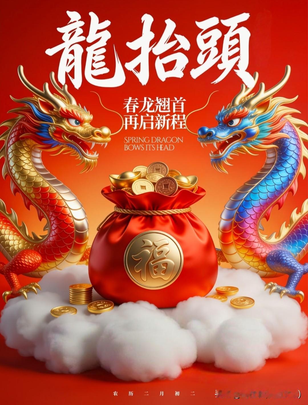 今日龙抬头恰逢春分,双吉临门,春光正好,鸿运当头。春风拂面,万物生长;神龙昂首,福运自来。愿你所求皆如愿,所行皆坦途,日子有奔头,生活有甜头,平安喜乐常相伴,财源广进福满堂,一年更比一年好。