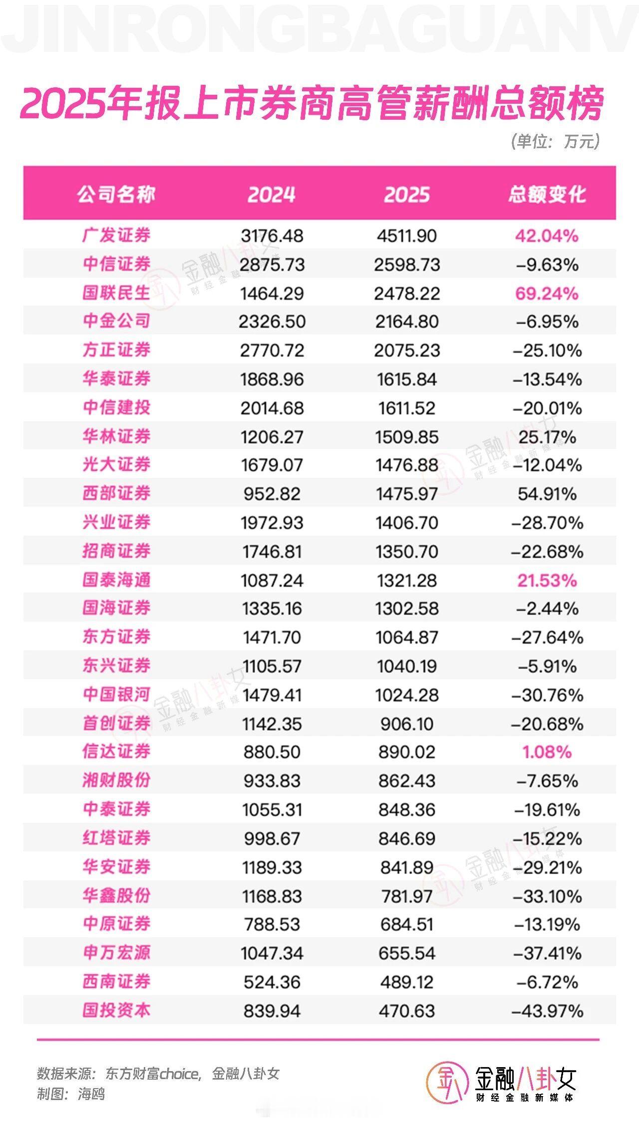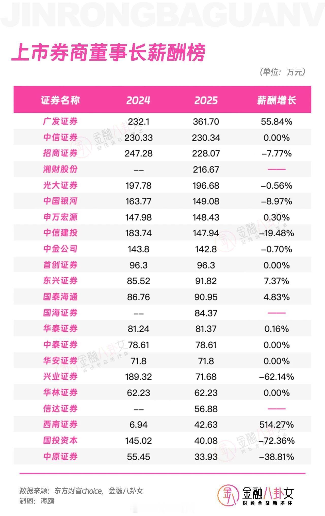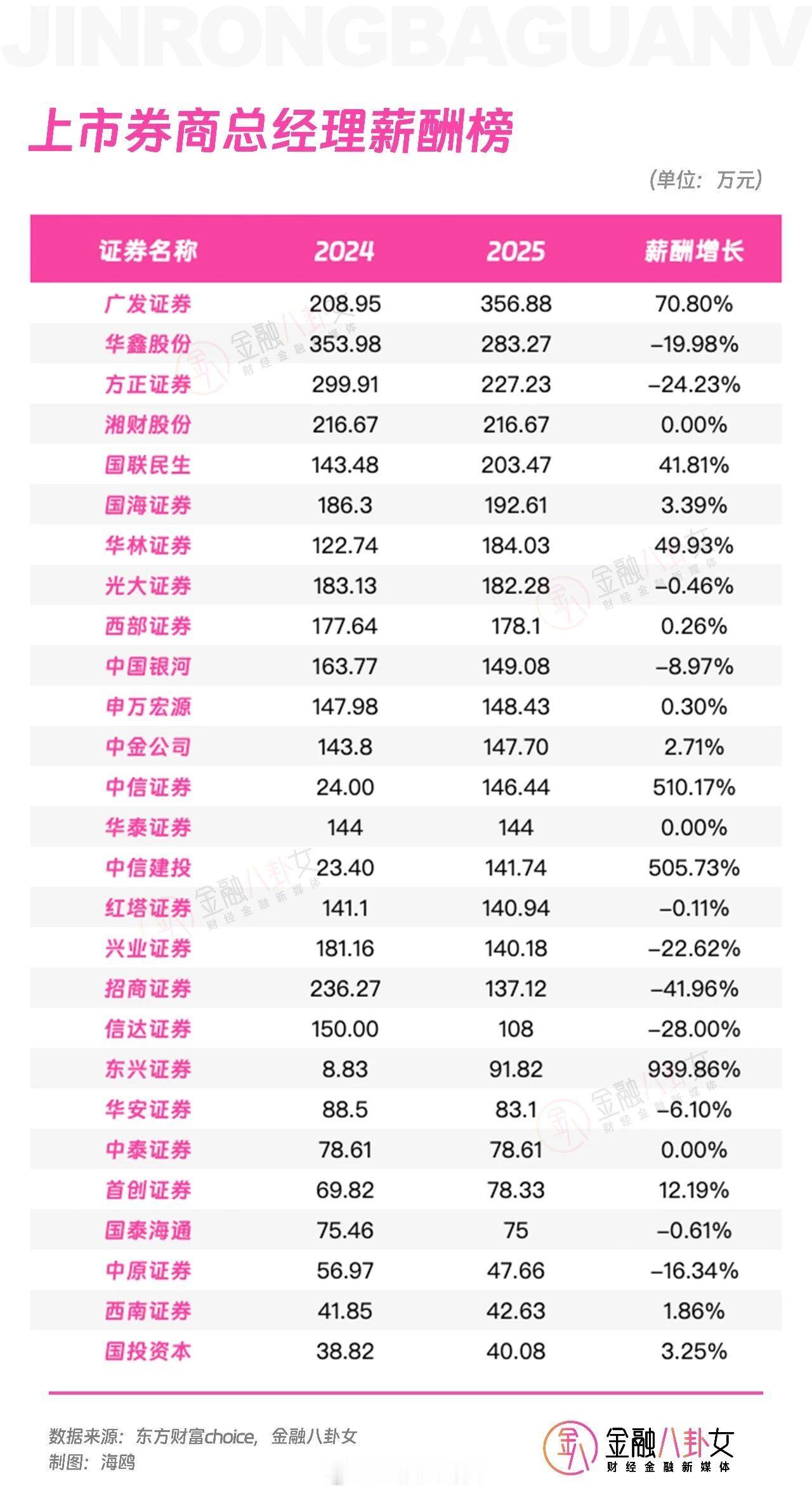 2025年报上市券商人均薪酬、高管薪酬、董事长薪酬、总经理薪酬榜