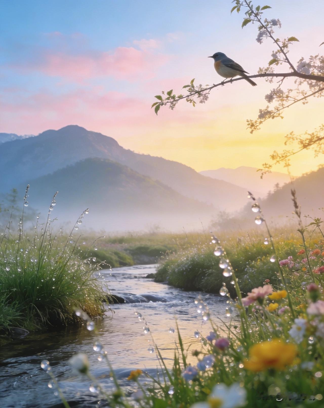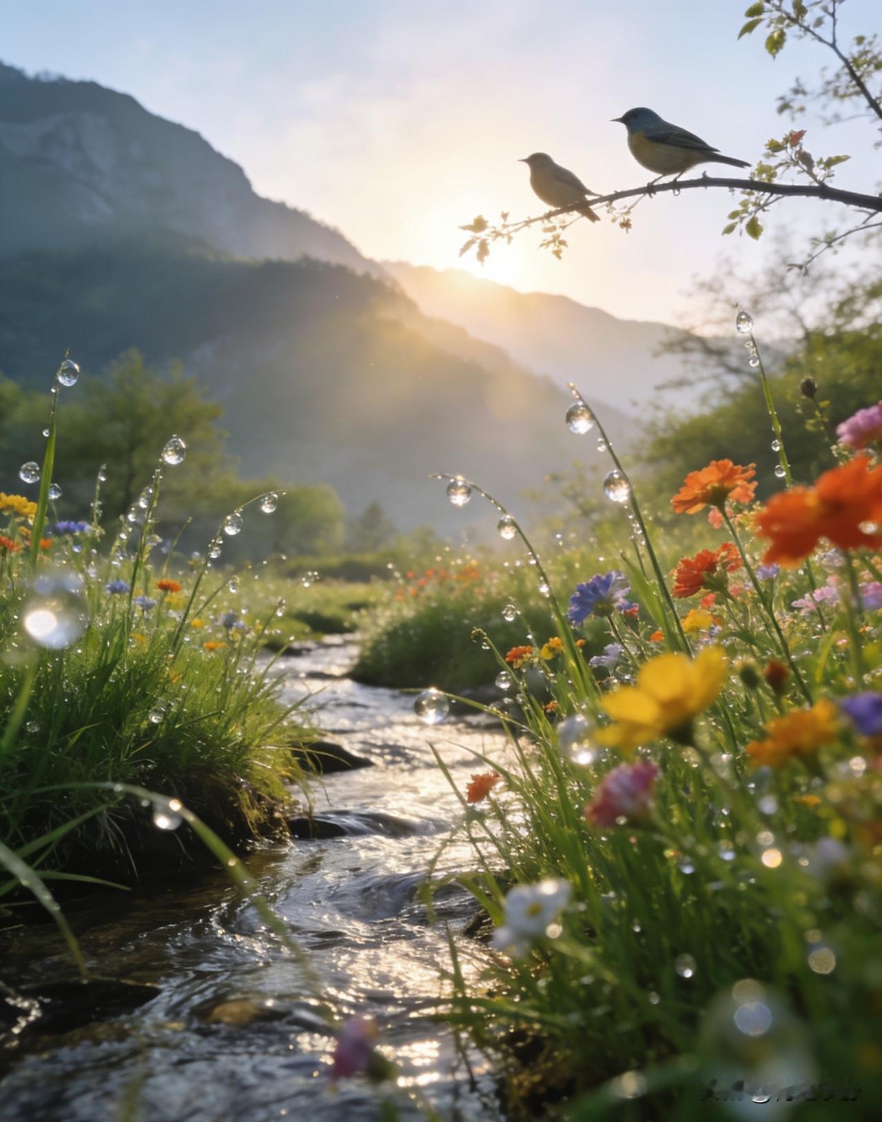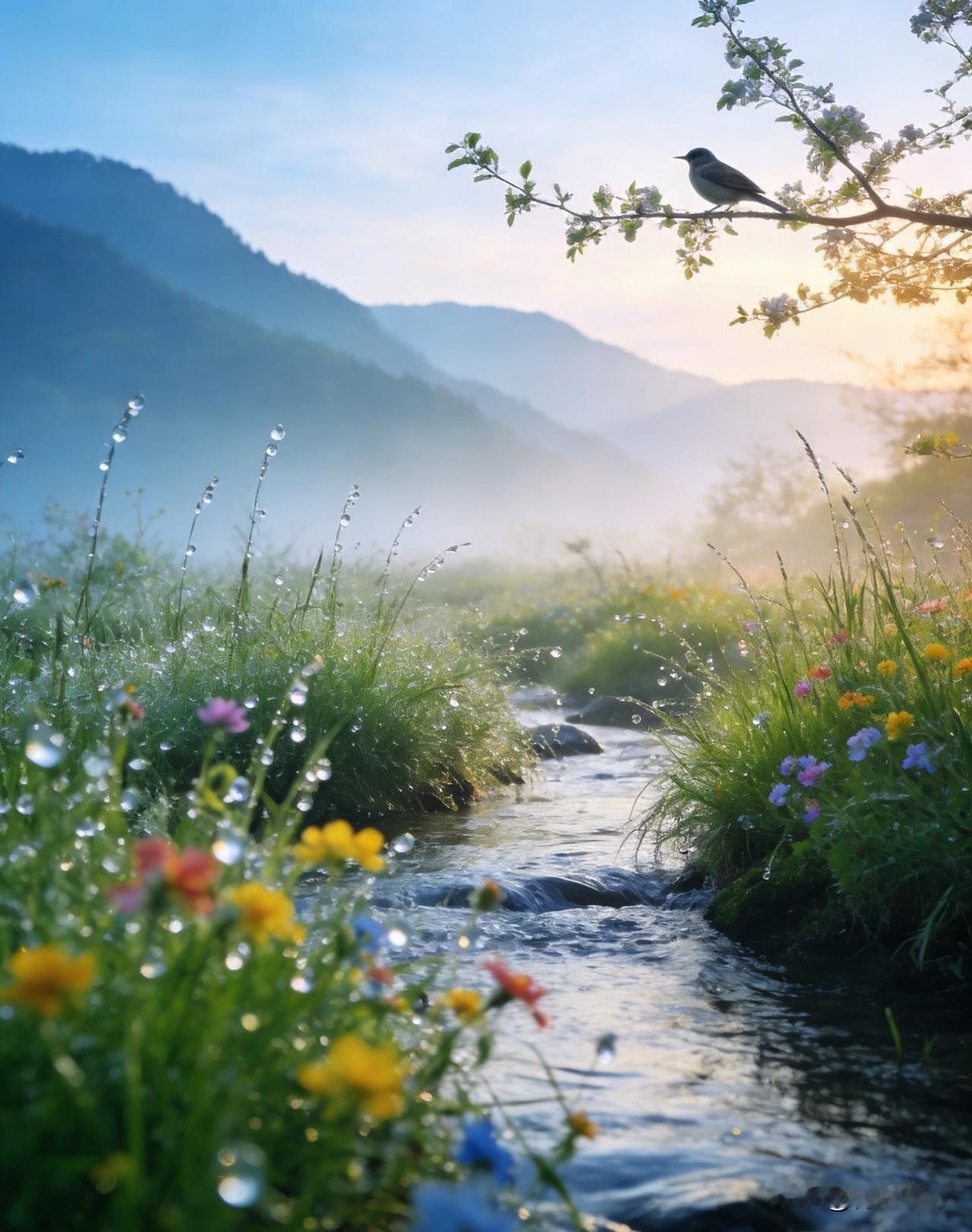 🍃朝露缀春,山川明媚,一声早安,送你整日温柔顺遂。