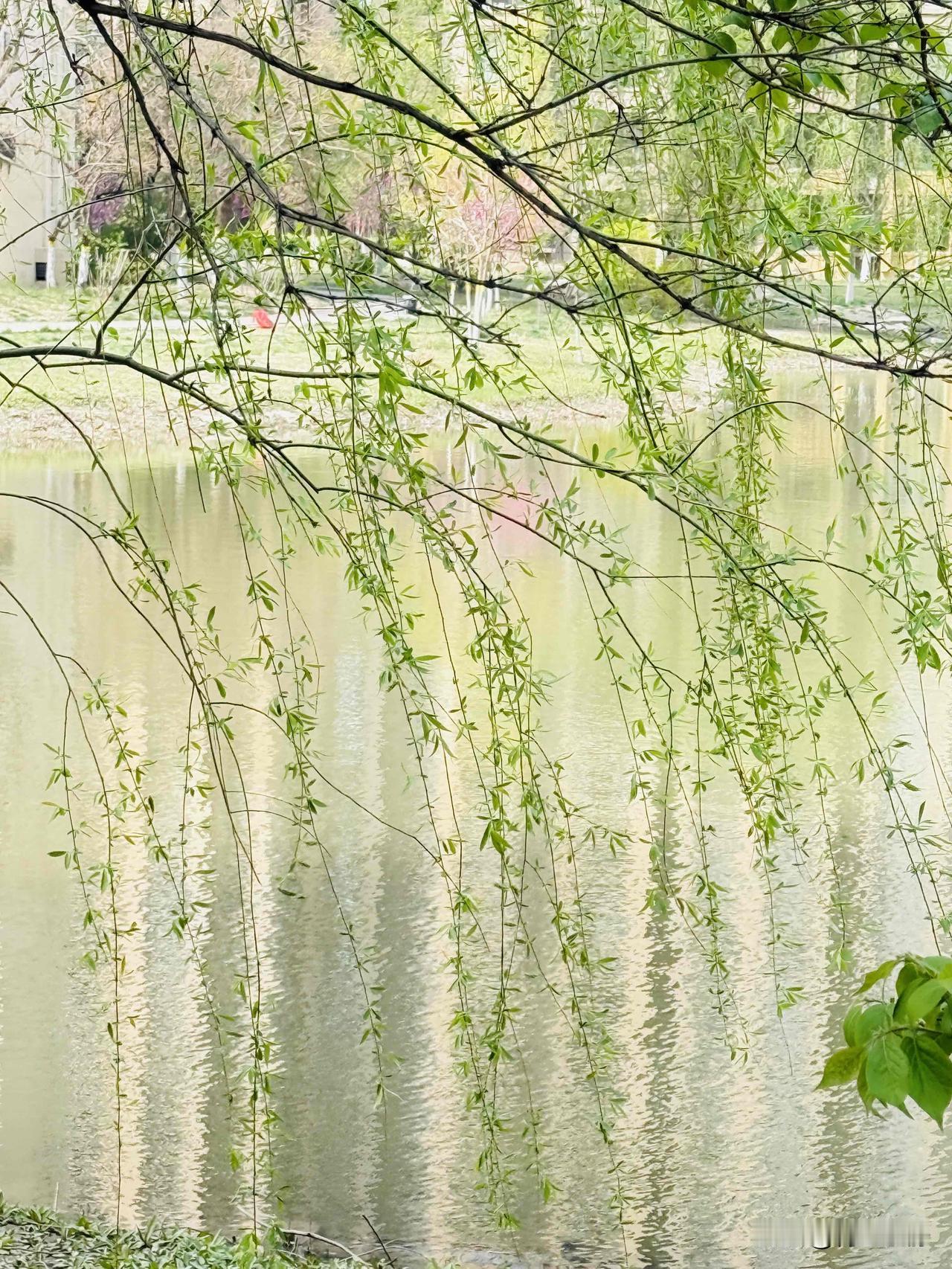 绿柳荡湖岸 春风吹绿岸边柳