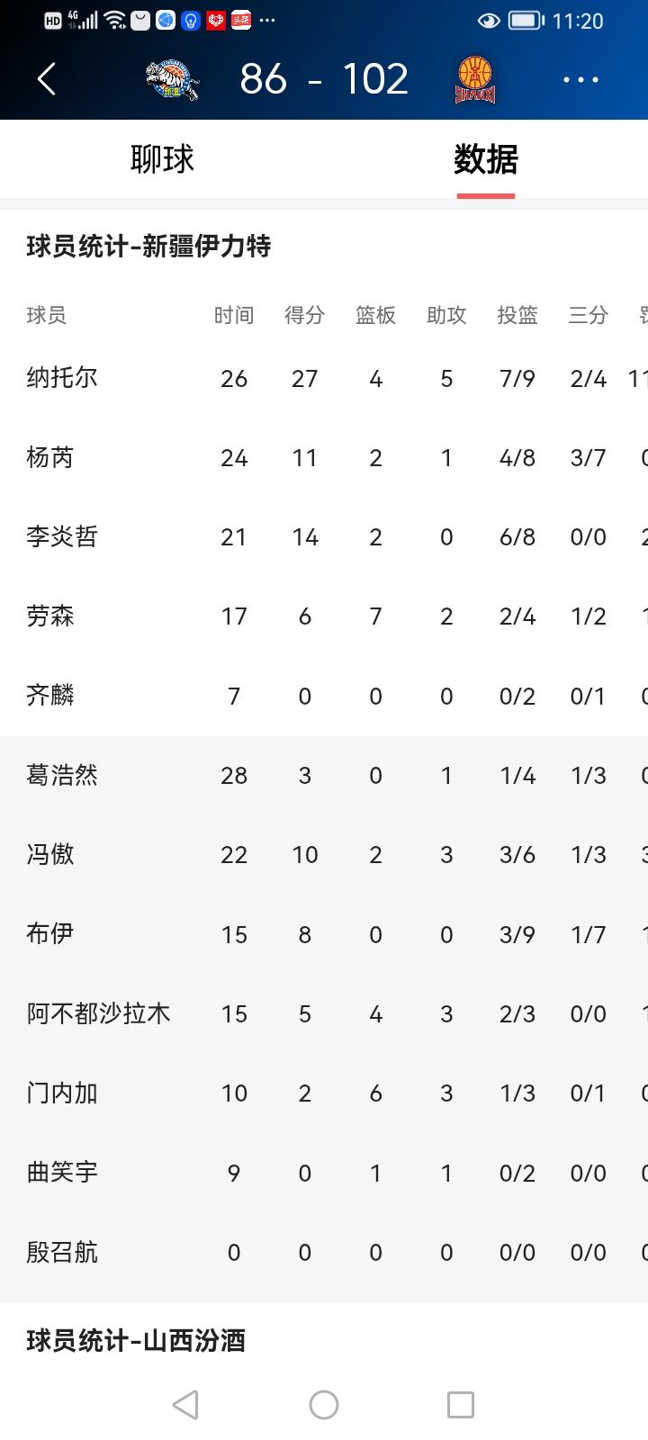 纳托尔全场27分也没有帮助新疆队赢了山西汾酒