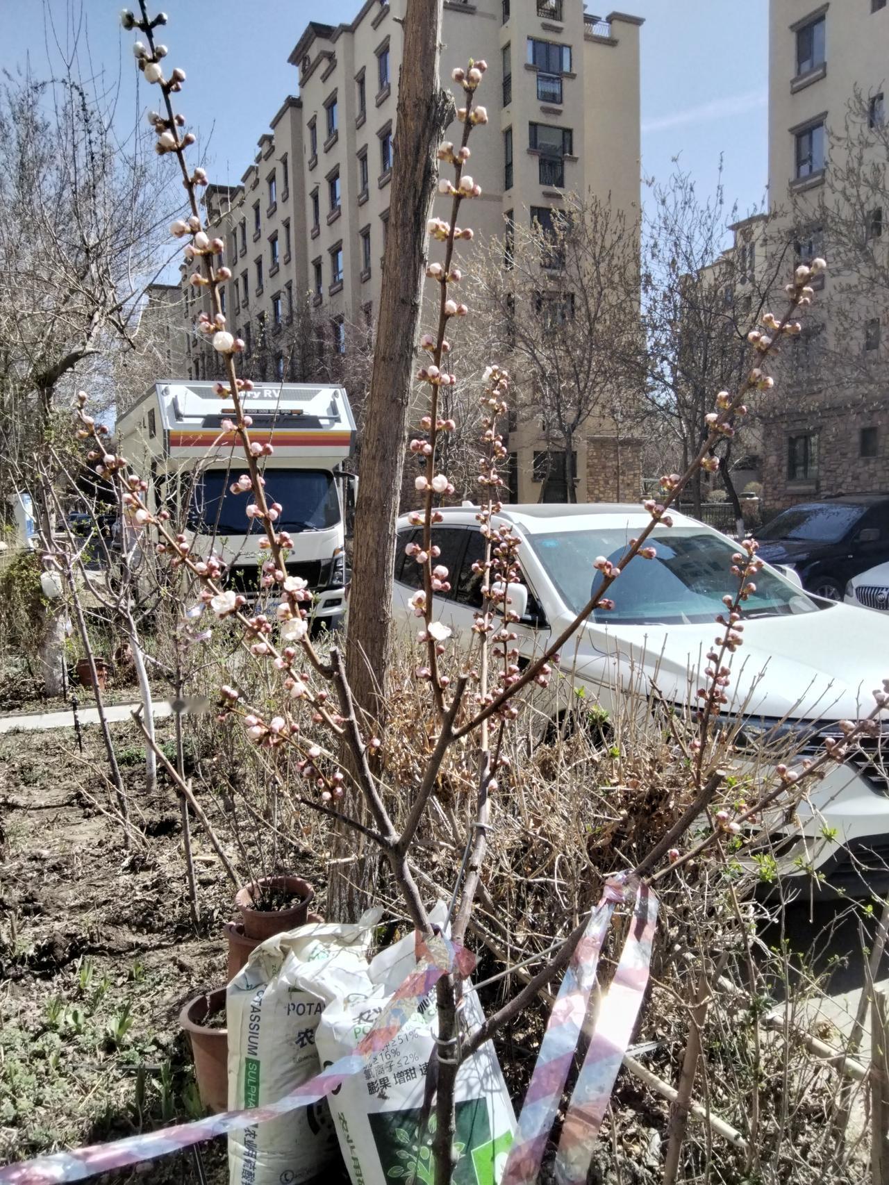 家里去年春天栽种的两棵桃杏树,这两天开花了。一棵花开得早一些,一棵睌些。