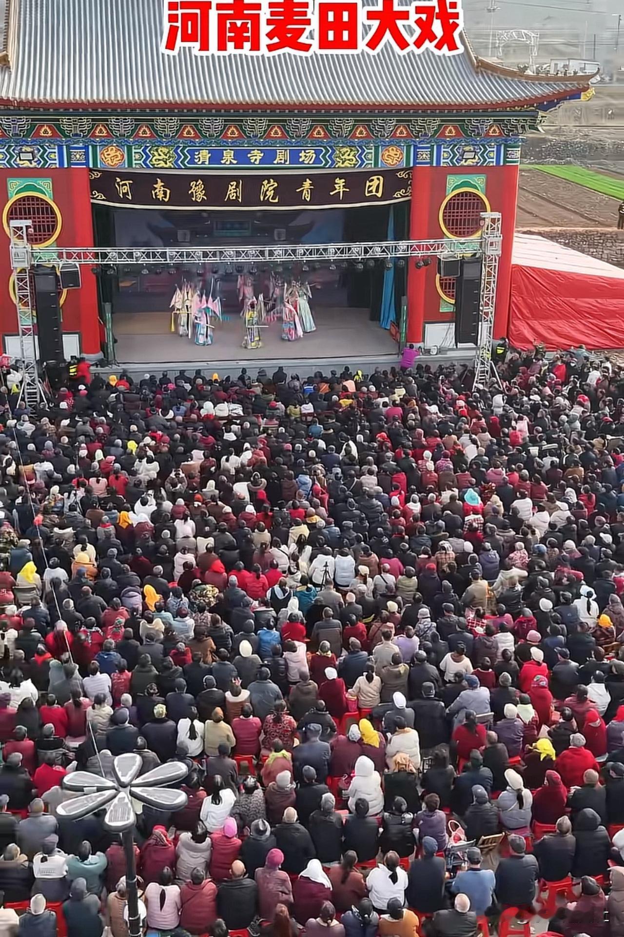 河南唱大戏,真的火上新闻。现场人山人海,摩肩接踵,数万人从四面八方涌来,把戏台围
