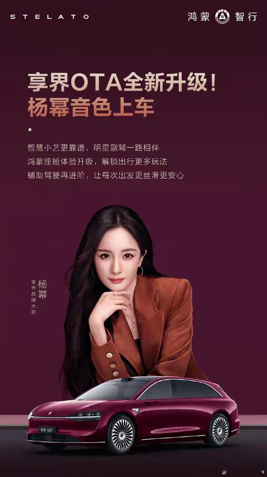 2025 年 10 月,享界汽车宣布沈腾和杨幂成为享界品牌大使。享界车型后续还 OTA 升级了车载语音助手小艺,支持杨幂音色。