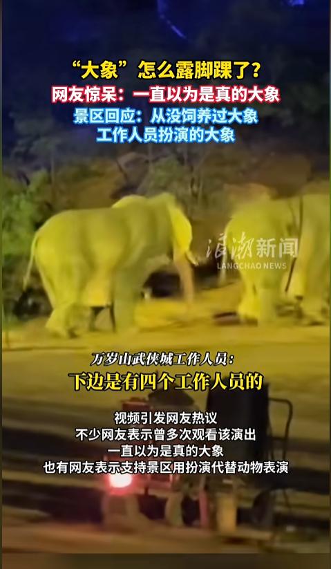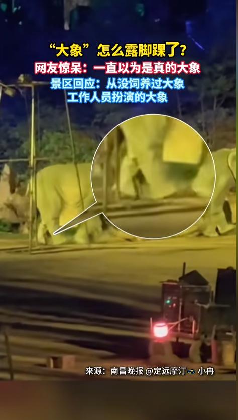 信息来源:《“大象”怎么露脚踝了?网友惊呆:一直以为是真的大象。景区回应:从没饲养过大象,工作人员扮演的大象》浪潮新闻