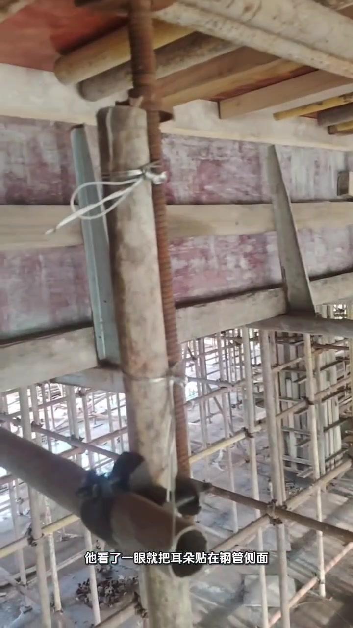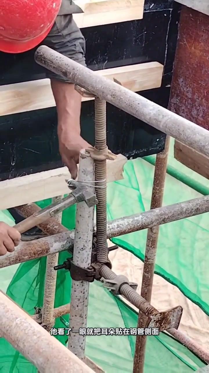🎯工地开架遇到钢管卡密洞,每次都费劲?今天被老师傅的操作惊艳到了!他看一眼就把耳朵贴在钢管侧面,稍用力就搞定了,原来还能这样借力,专业的果然不一样,脑子转得快活儿干得漂亮,偷偷学了一手!
