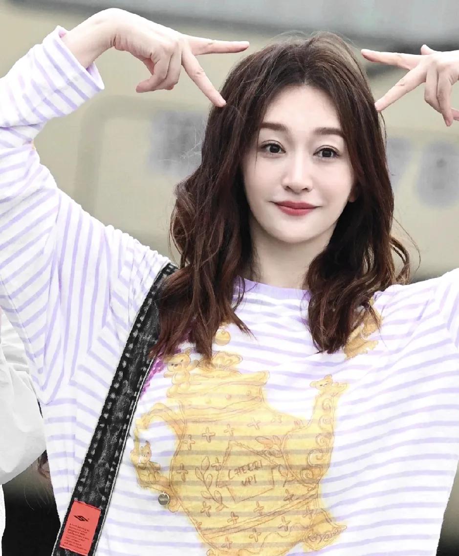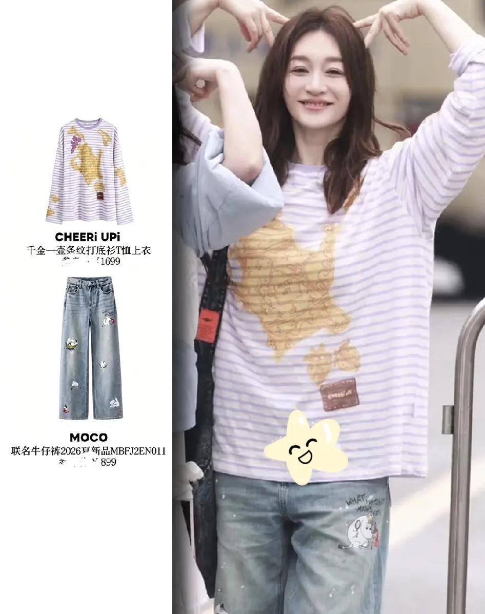 内娱我最佩服李小冉。 就这一件条纹长袖,搭普普通通的牛仔裤,上面印着可爱的兔子,