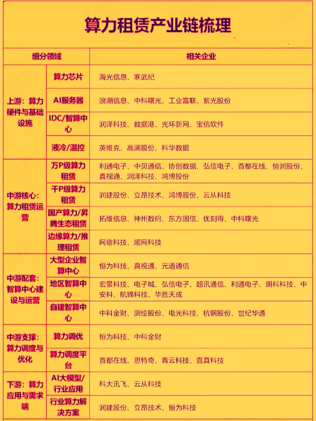 近期算力租赁板块成为了当下市场主线之一。润建股份,宏景科技,协创数据等多只概念股获得资金抢筹,部分个股呈现出慢牛或短期爆发的态势。算力租赁行业目前正处于行业深度洗牌与高景气度并存的关键阶段,市场逻辑已从炒概念转向验业绩。协创数据等公司因算力业务释放,今年一季度净利润预增大超市场预期而股价大涨,验证了行业高景气度。随着‌国产替代的加速,国产渗透率将持续提高,具备绿电和算力协同能力的服务商将更多的获得政策与成本的双重优势。在AI大模型迭代与政策的驱动下,未来算力租赁产业将向‌高质量,服务化,绿色化‌方向稳健发展。接下来可积极关注产业链上相关个股的交易性的机会。重点可关注利通电子,协创数据,宏景科技,润泽科技,润建股份等。