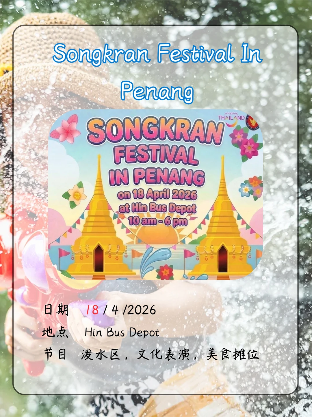 🇹🇭😍每年的Songkran节,不一定要飞去泰国,其实在马来西亚也有很多好玩的活动!🇲🇾