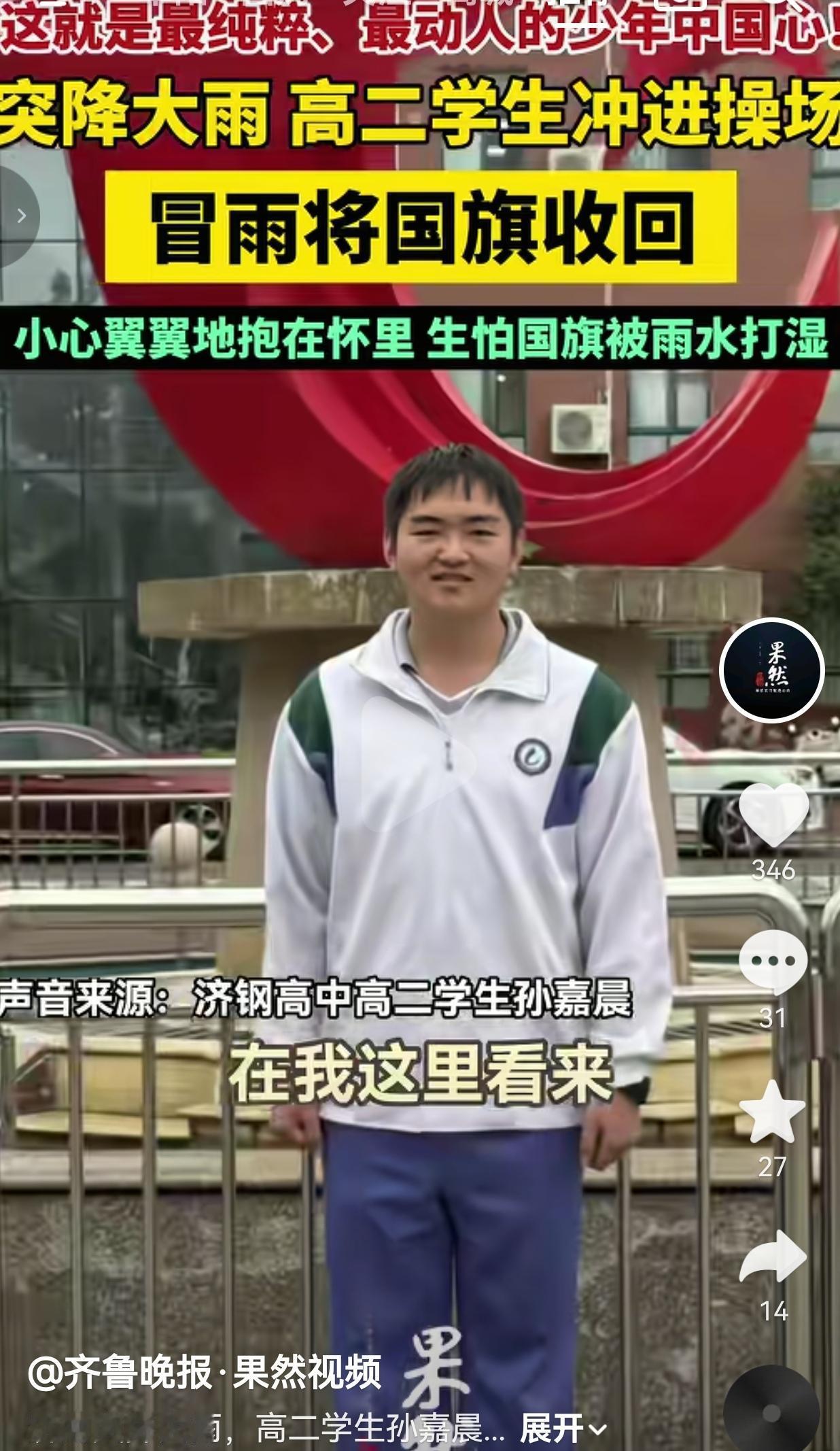 我们总说“少年强则国强”,可真正的少年强,从来都不是口号,而是像孙嘉晨这样,把热爱和责任,藏在每一个本能的行动里。